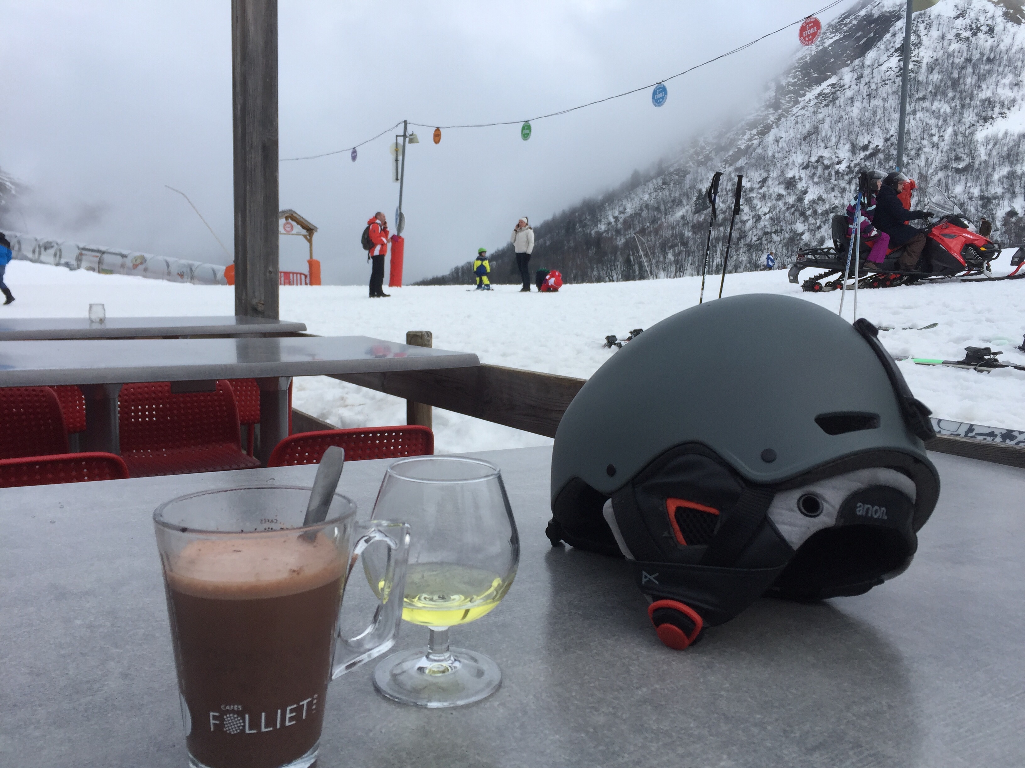 Belle terrasse au pied des pistes. Un peu cher (comme dans beaucoup d’endroits à la montagne).