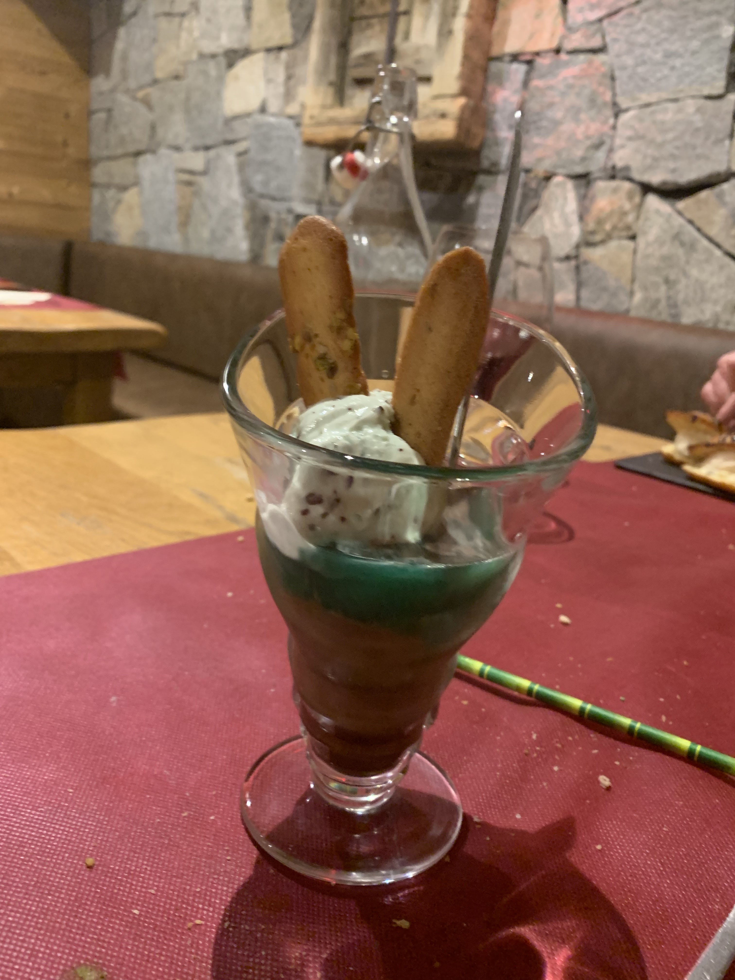 Le cadre magnifique après une journée de rando, énorme choix de glaces et cocktails, le personnel sympathique, on a deviné son sourire et son amabilité derrière son masque