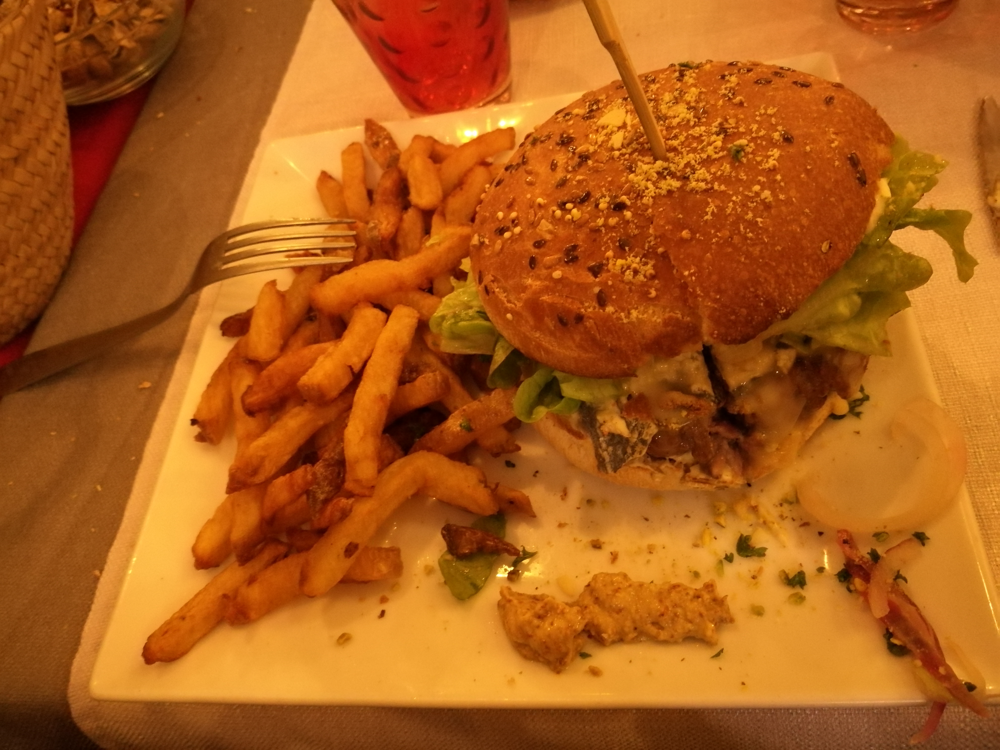 Plutôt bon, malgré un burger trop cuit (steack dit à point très cuit et pain trop grillé) mais service très long (2 heures pour manger plat-dessert), serveuse pressée, désagréable et moyennement compétente (oubli de l'eau, d'un dessert). Le cadre est agreable. Dommage...