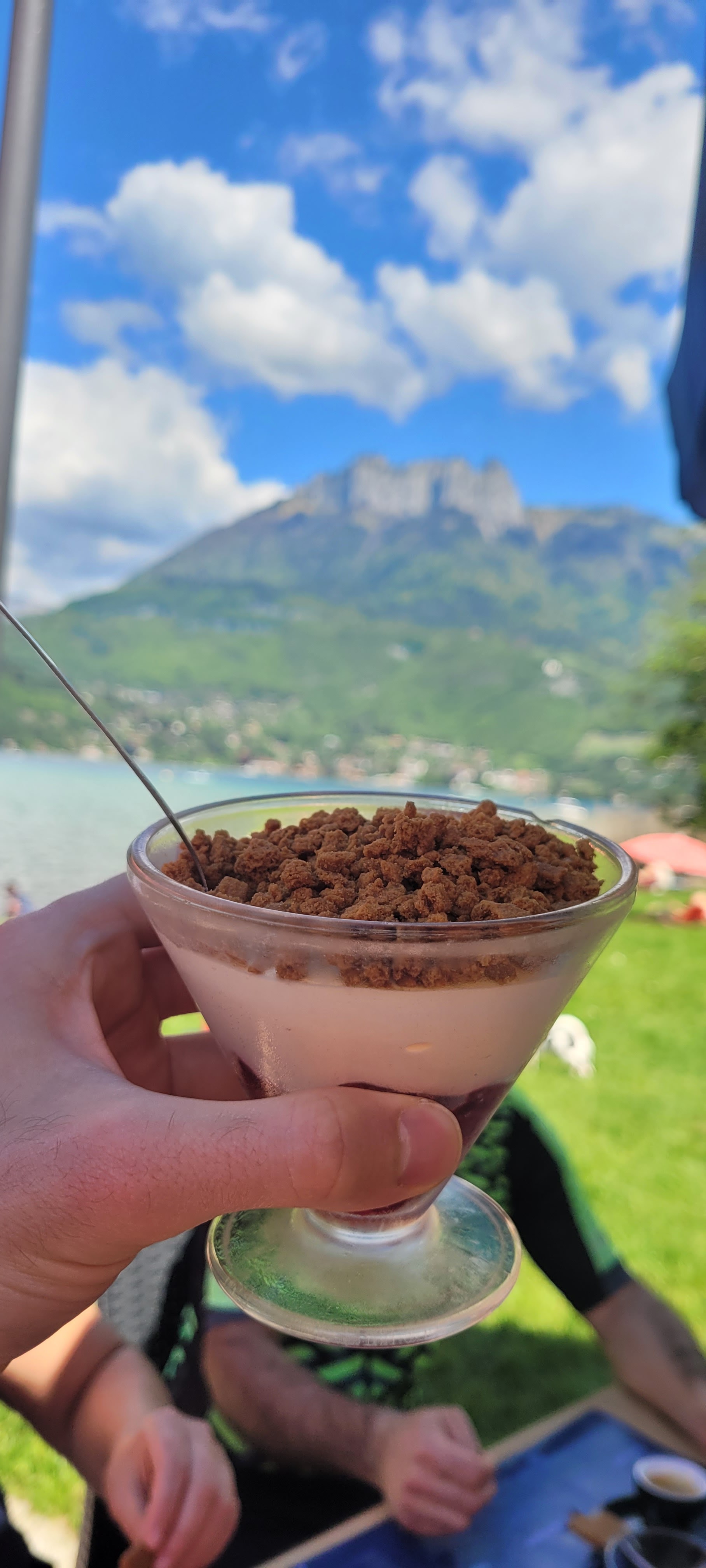 Pause repas incontournable et bien placé après avoir fait le tour du lac d'Annecy avec des enfants. Tout était parfait, service rapide et agréable au bord de l'eau. Les enfants se sont amusés le temps que nous finissions de manger. Salade, sandwich,frite, hamburger,viande,dessert et un plus pour la chantilly qui a attiré l'oeil de ma compagne. Je recommande ++++ et nous reviendrons avec plaisir en vélo ou en voiture.