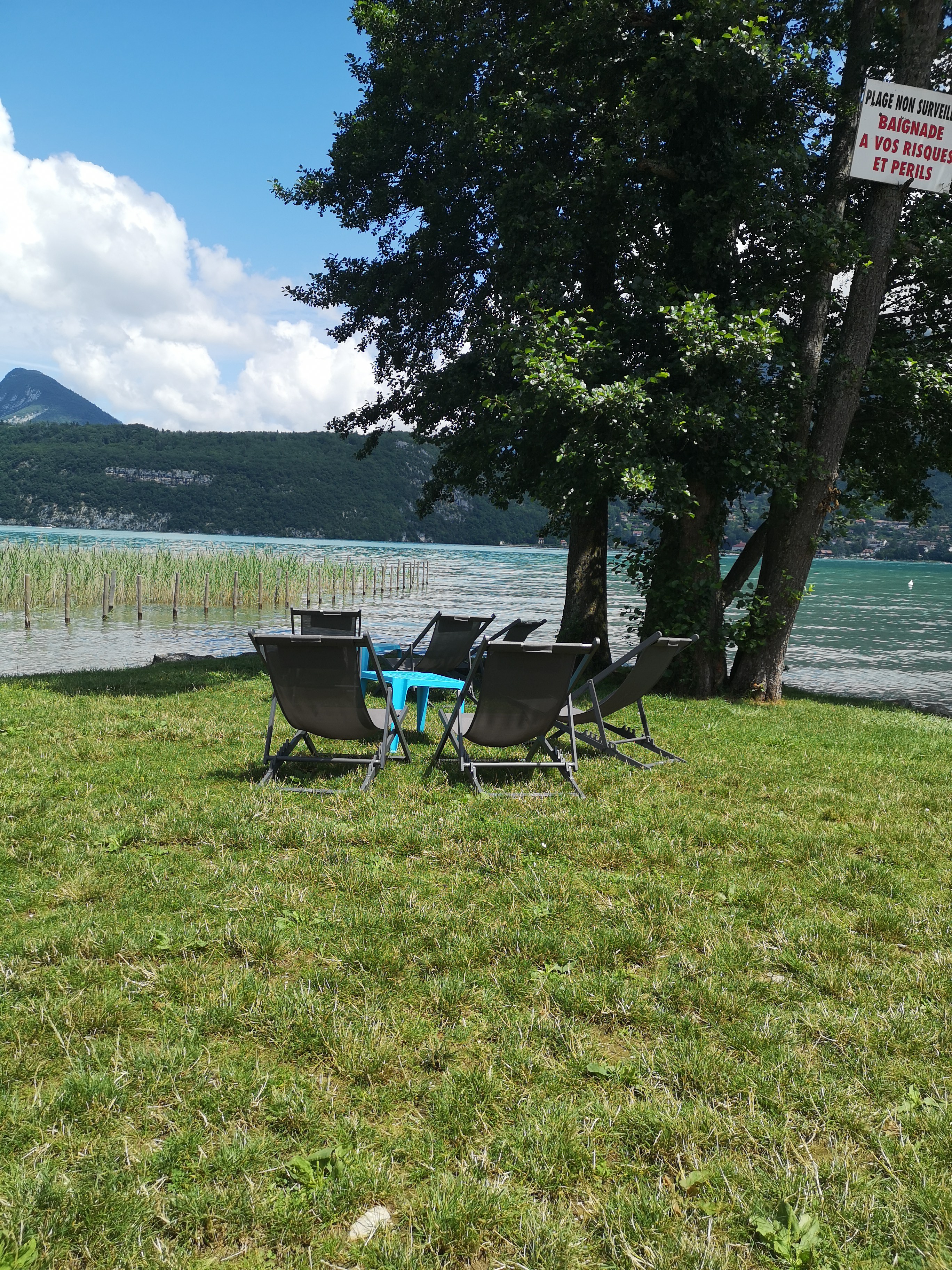 Sympa au bord du lac pour vous faire patienter vous avez des transats au bord de l'eau.