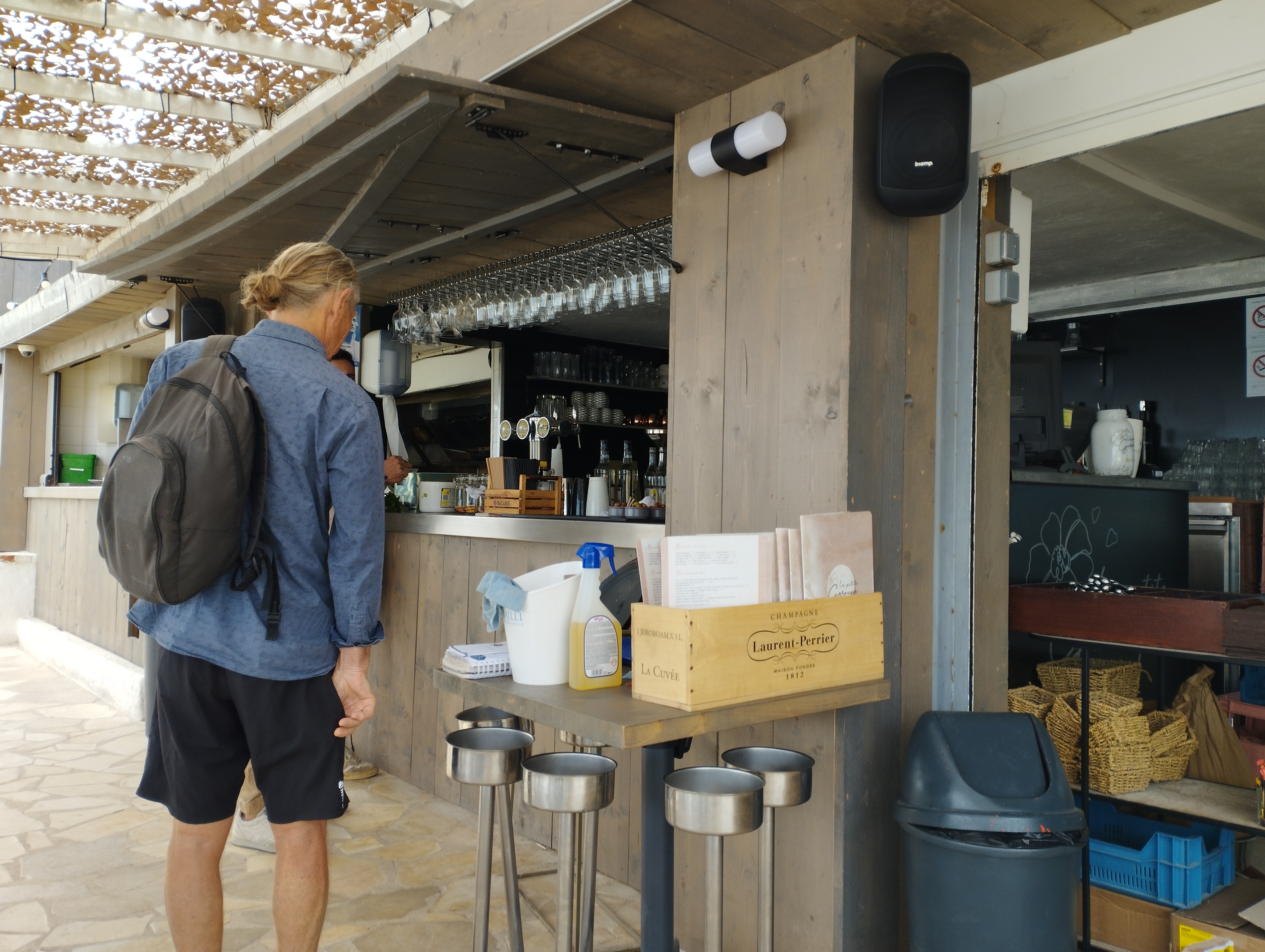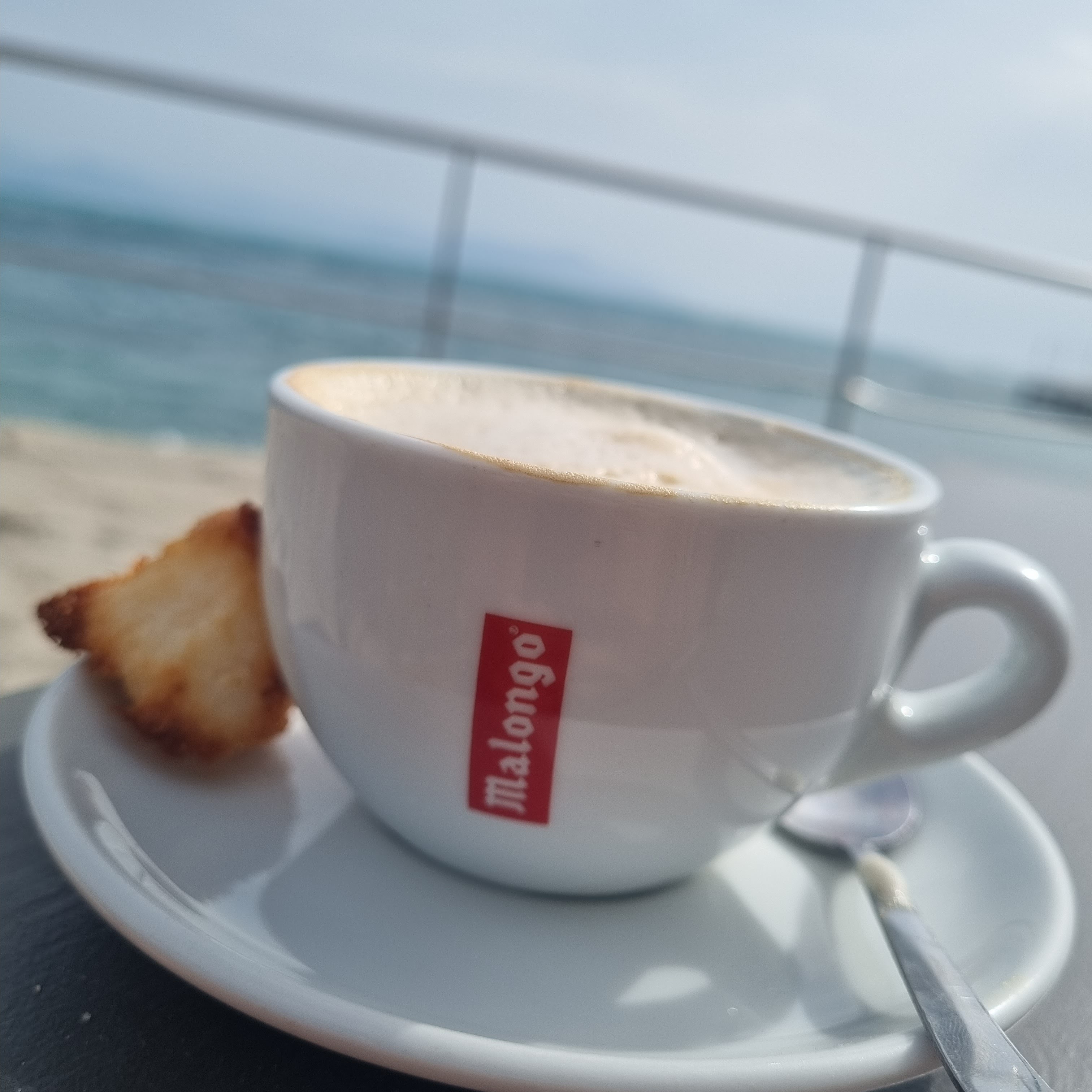 Petit café (2€) lors d'une sortie vélo sur cette magnifique plage avec vue sur la Côte d'Azur, l'arrière pays et le Mercantour. Accueil sympa.