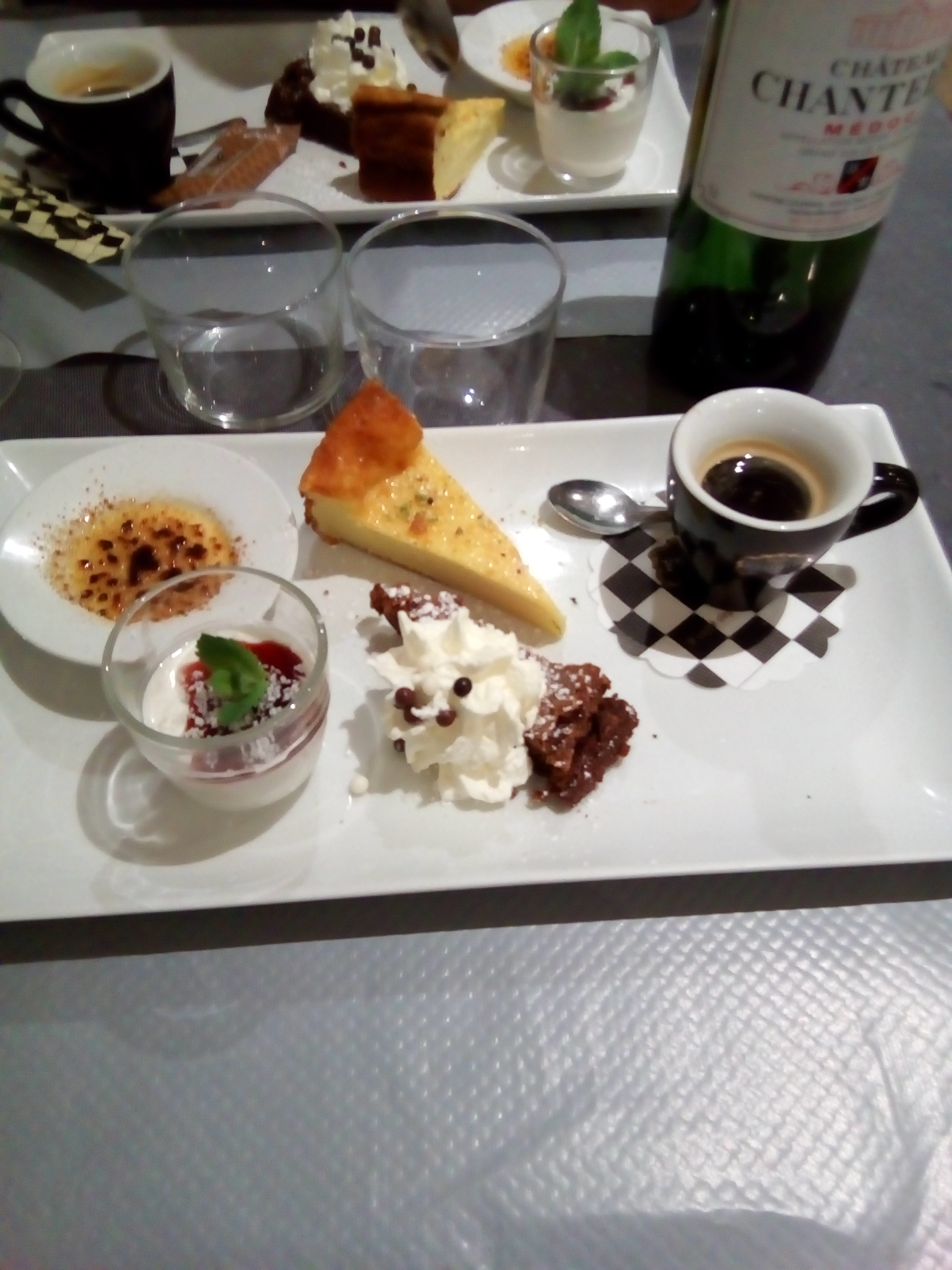 Excellent !! Des saveurs inhabituelles et surprenantes, tant plat que dessert et entrée ! Un café gourmand assez énorme et un café délicieux. Nous reviendrons avec un vrai plaisir.