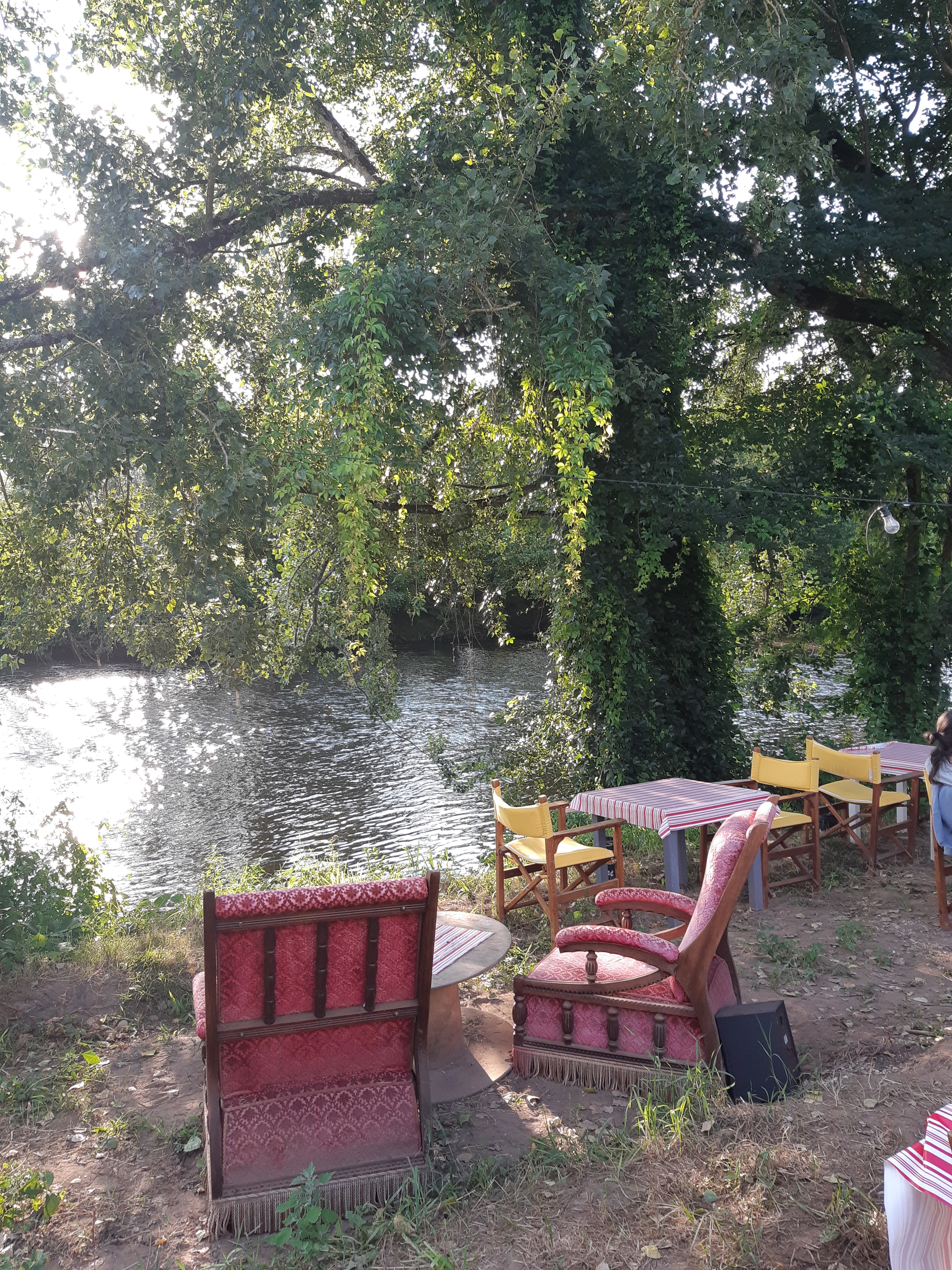 Si vous cherchez un restaurant, surtout passez votre chemin ! Ces canapés vous amèneront à la détente autour d’un bon Parmentier de canard cuit au feu de bois en cette nouvelle saison 2023 ! À la Petite Guinguette de St-Léon c’est un voyage à chaque passage ! Le long de la Vezière, lanternes et lampions sous les toiles suspendues vous feront découvrir les saveurs de la région en se mélangeant à la végétation, le maître des lieux saura vous sonner pour venir chercher votre assiette car il est bien trop occupé à faire de votre palais gourmand un plaisir à part entière ! Tout y est, même vous prendre pour un Roi sur le trône ! 😁Alors si vous faites partis de la communauté des bons vivants au plaisirs simples, allez saluer Jean et Betty, le bonheur au fil de l’eau. Un petit clin d’œil à Xavier qui s’occupe des locations kayak, très belle rencontre !😉 Momo et Popeye Les p’tits Bretons !