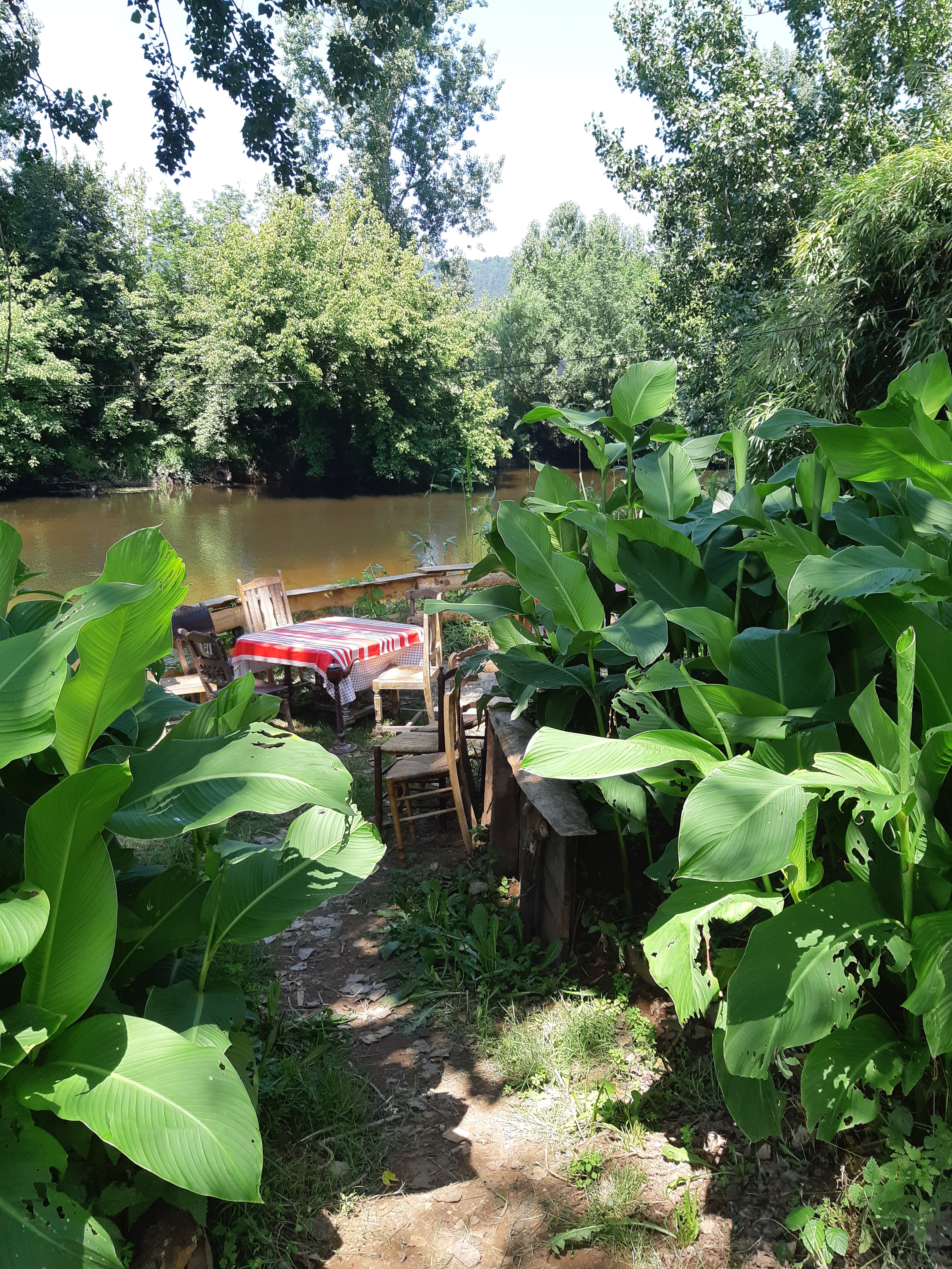 Halte gourmande, délicieuse, accueillante, réconfortante, au charme du temps présent, sur la rive de la Vézere, les pieds dans l'eau, pour un déjeuner parfait, le long de notre parcours en canoë. À expérimenter, le village est magnifique dans son écrin de nature...