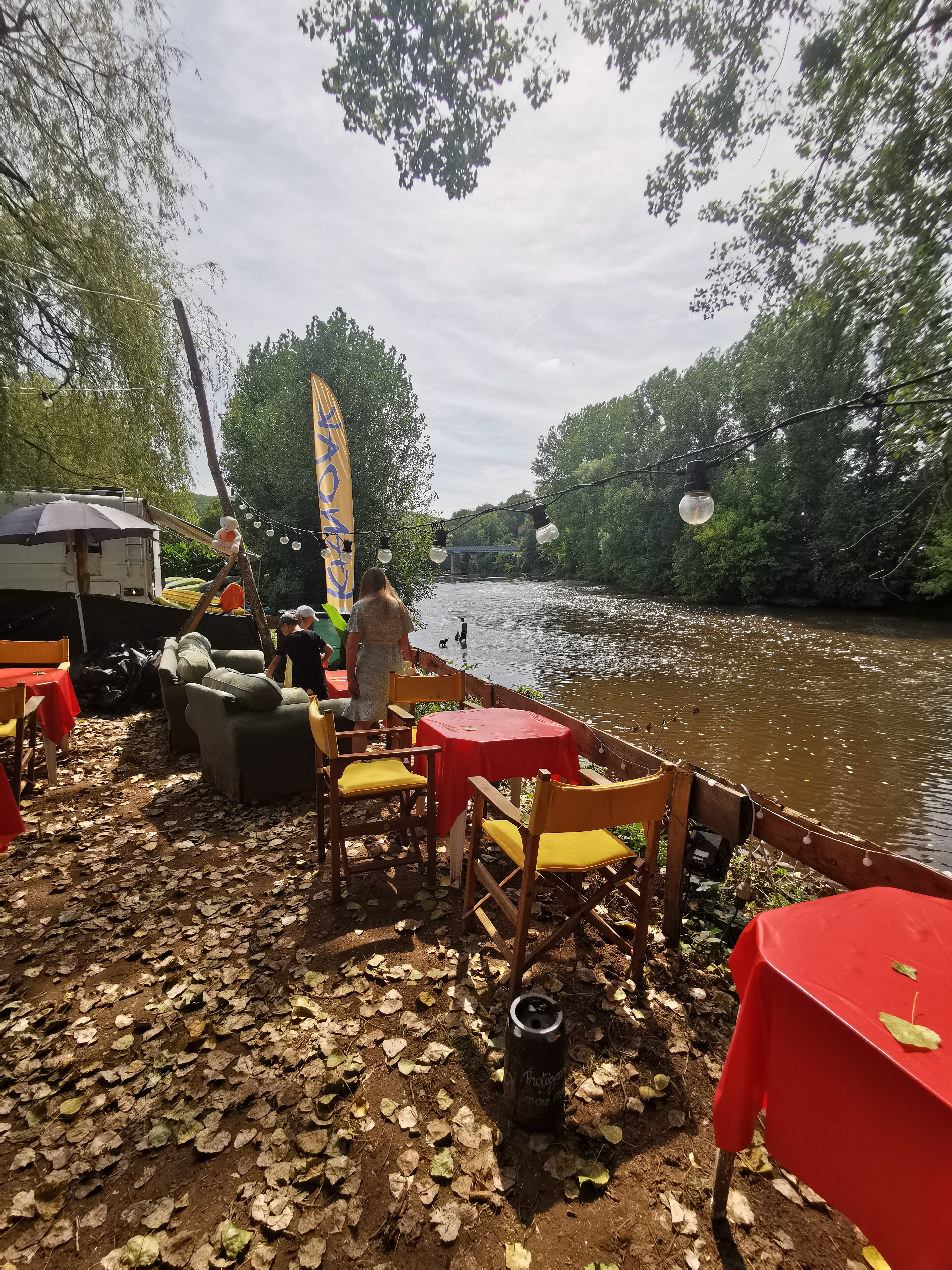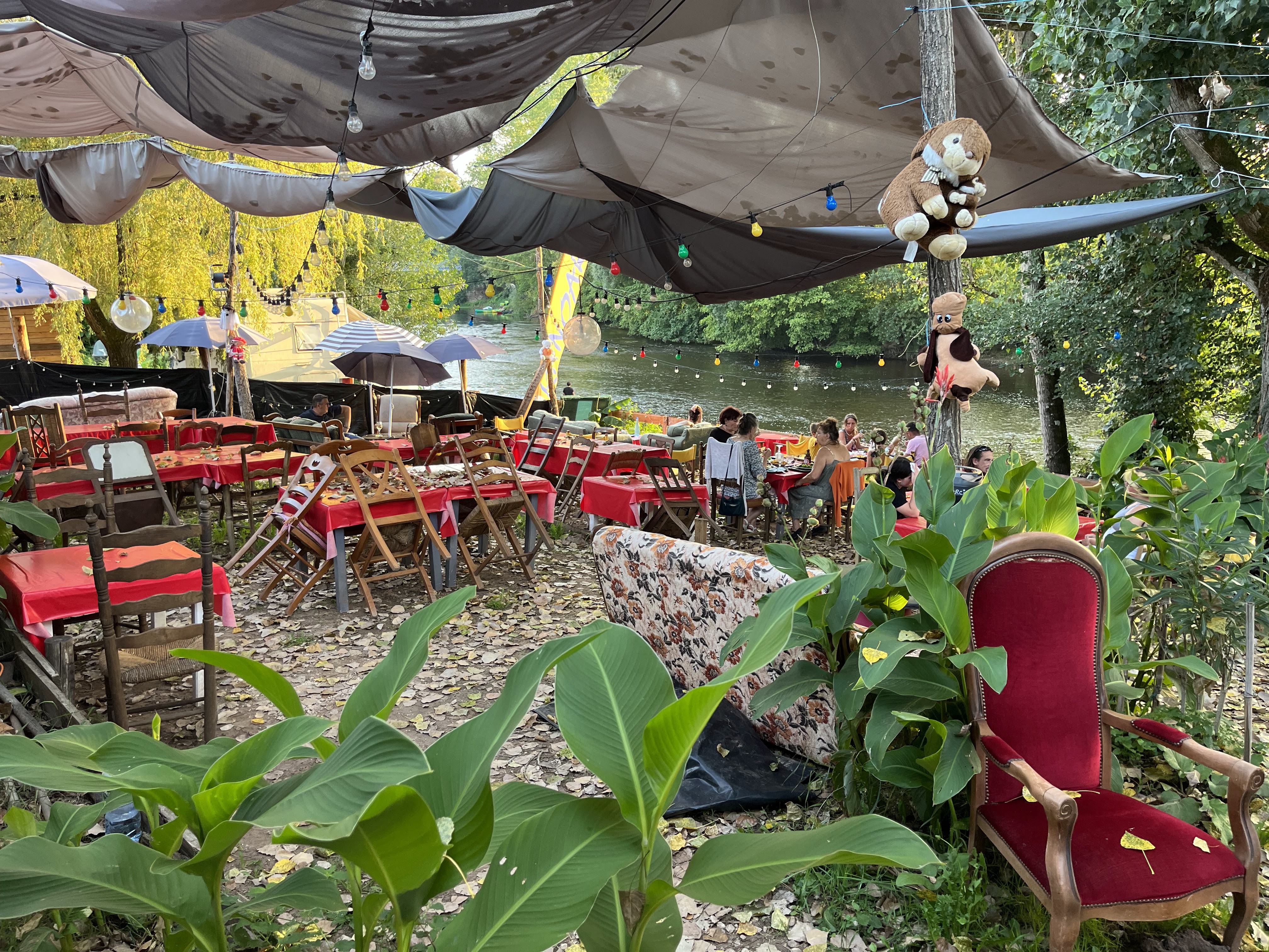 Lieu atypique et convivial où on se sent vraiment dépaysé..super de pendre son verre le long de la rivière avec qui plus est un accès à cette dernière..