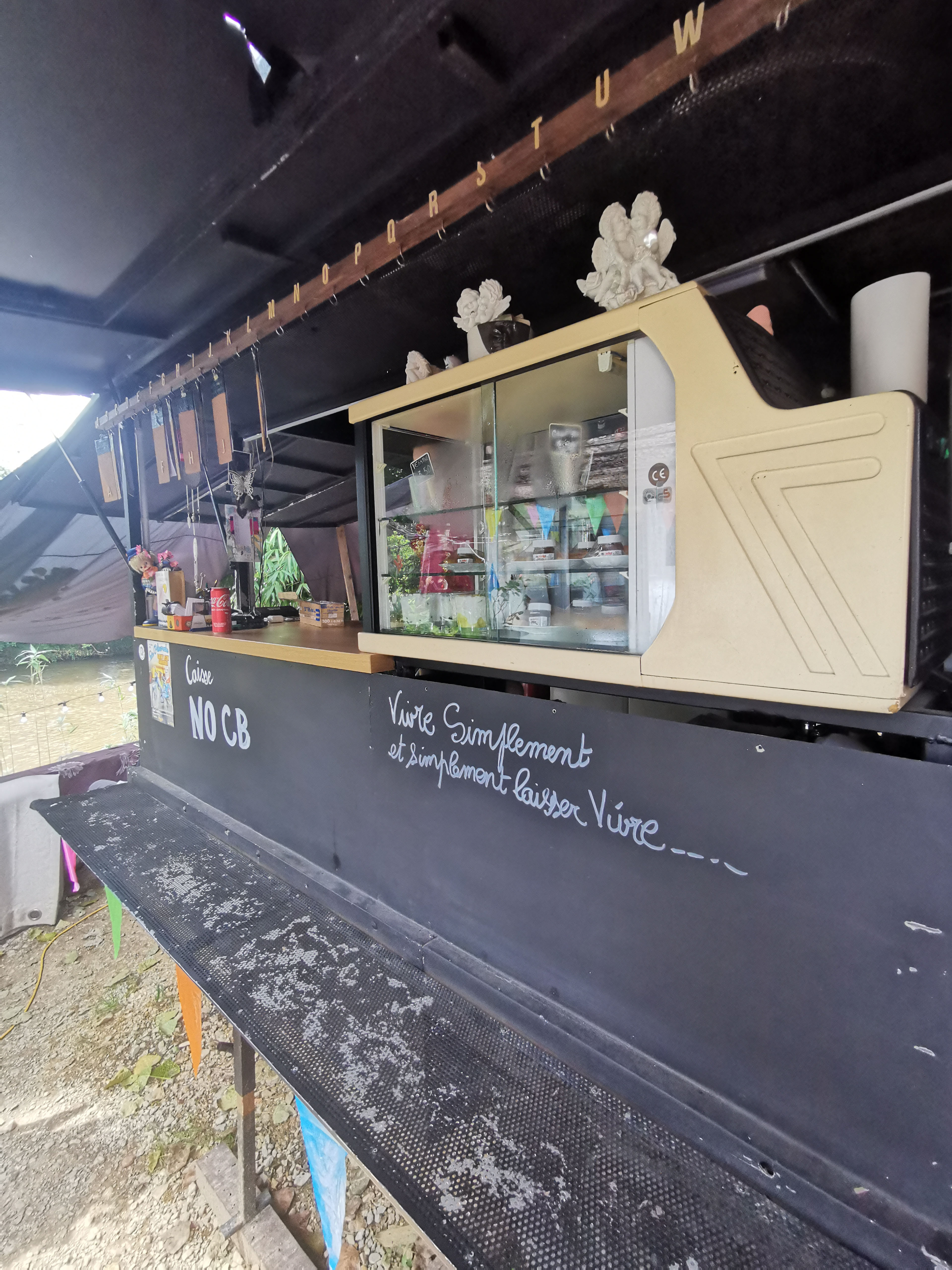 Pas fan du lieu. Dès votre arrivée on vous fait comprendre que vous êtes dans un lieu « énergisant » et le gérant vous raconte sa vie d’une manière assez malaisante. Les tables et chaises sont en extérieur donc forcément un peu sales et abîmées mais ce n’est pas un problème en été lorsqu’il fait beau - ça fait partie de l’ambiance. 55 mins d’attente pour une assiette à 10€ avec 1 merguez, 1 saucisses, un peu de frites et de crudités c’est long par contre. La nourriture et la boissons ne sont pas chères et pas mauvaises donc ça compense un peu. Perso je n’ai pas accroché du tout mais cela peut plaire.
