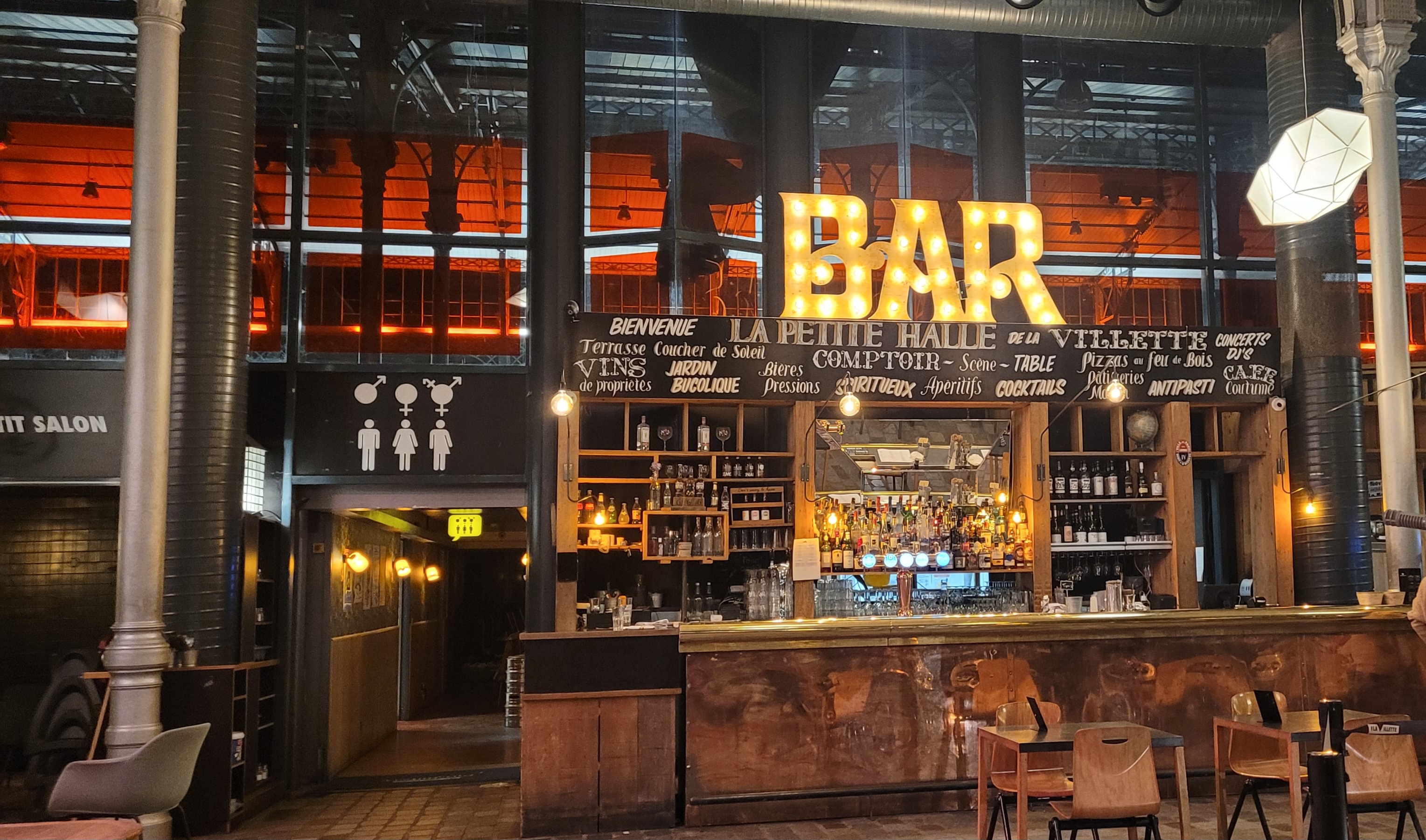 Au cœur du parc de la villette, cette (petite) Halle fait office de spot où se retrouver entre amis avant un concert ou une exposition. Mention spéciale pour les pizzas cuites sous nos yeux et la déco industrielle chic qui donne un accent chaleureux et branché à la nuit tombée. Côté cuisine les plats sont classiques et plutôt bien exécutés. Le service est en revanche parfois inégal, et un personnel visiblement surchargé. Dans l’ensemble, une belle adresse qu’on vous conseille.