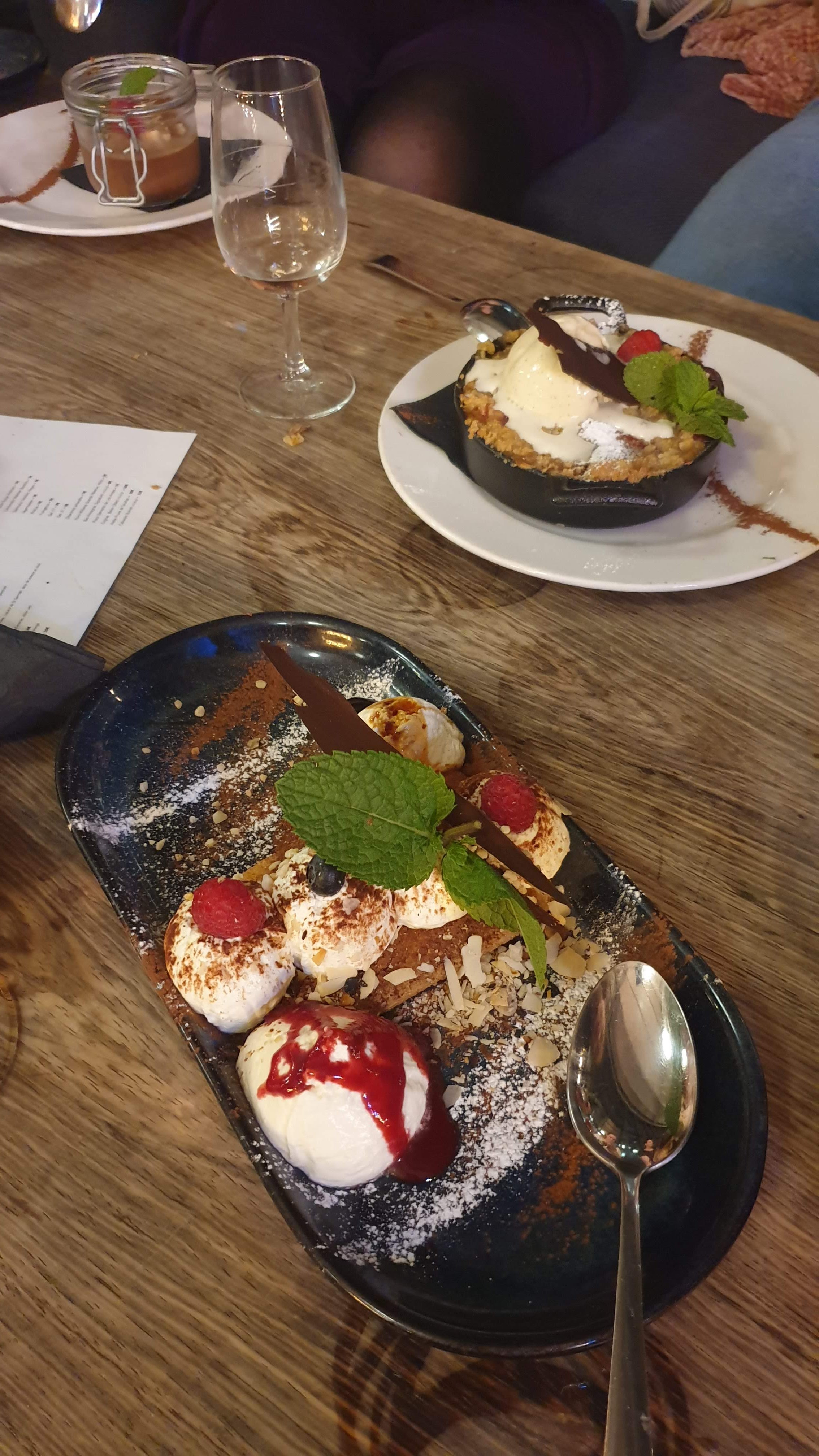 L'endroit est assez beau à la base mais dès qu'il y a du monde ça devient vite très bruyant. Ambiance hall de gare ou plutôt cantine. Les pizzas sont correctes, les desserts sont surgelés. Tout ça est très basique c'est donc vraiment cher pour ce que c'est ! Surtout que le personnel n'est pas très sympa et l'ambiance pas terrible.