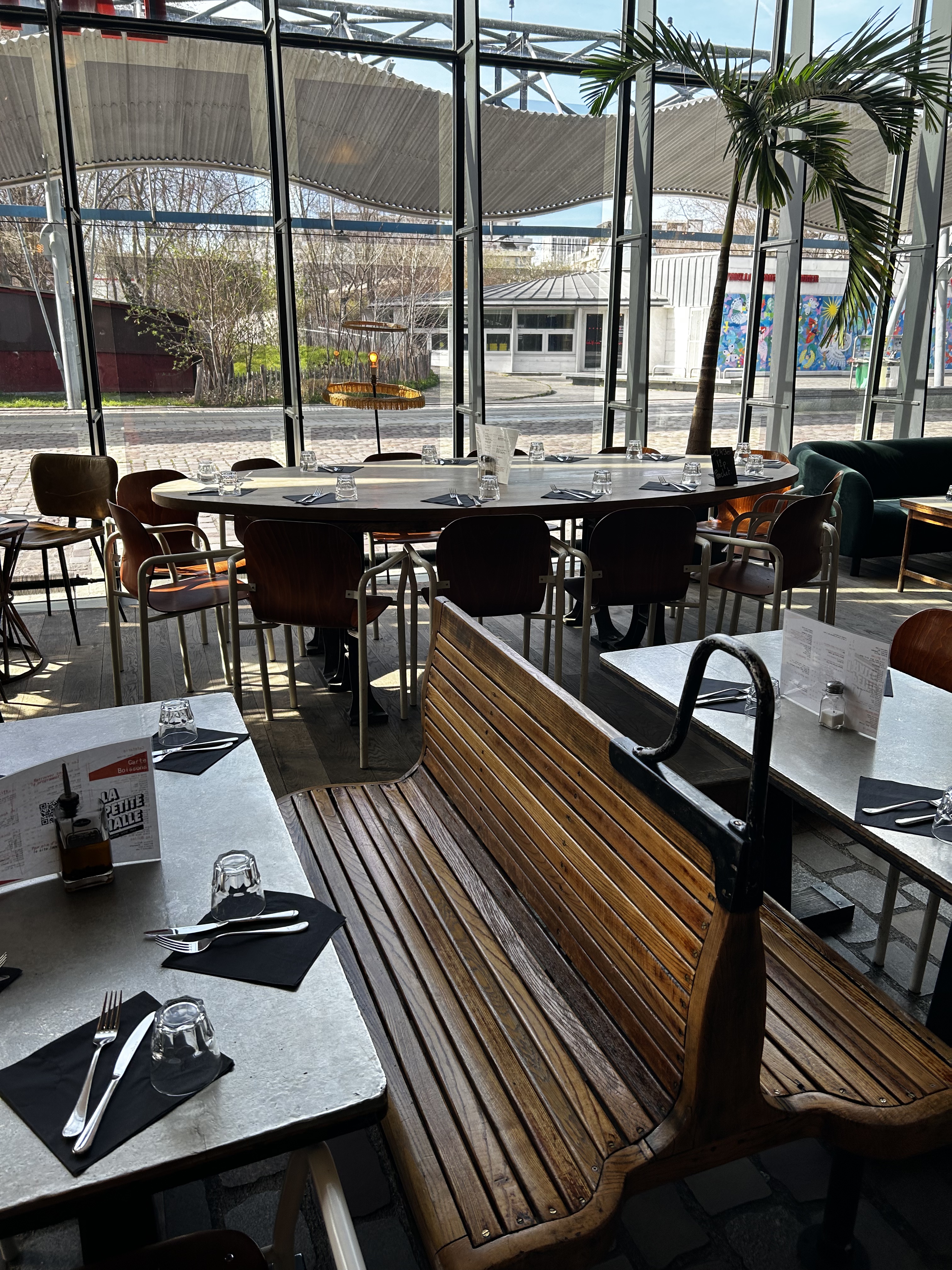 Ce restaurant/bar attenant la grande halle de la Villette a été une expérience un peu décevante. J'ai apprécié le cadre, de très beaux volumes, du mobilier sympa, des espaces avec des canapés, un bar en cuivre, un four à pizza au feu de bois visible de tous... tout est alléchant. Le résultat dans l'assiette ne suit pas, les pizzas manquent un peu de cuisson (est ce du aux nombreux clients qui se pressent ici à la du spectacle?) et les pâtes n'ont vraiment rien d'extraordinaire. Donc un lieu agréable et très pratique mais décevant sur le plan culinaire.