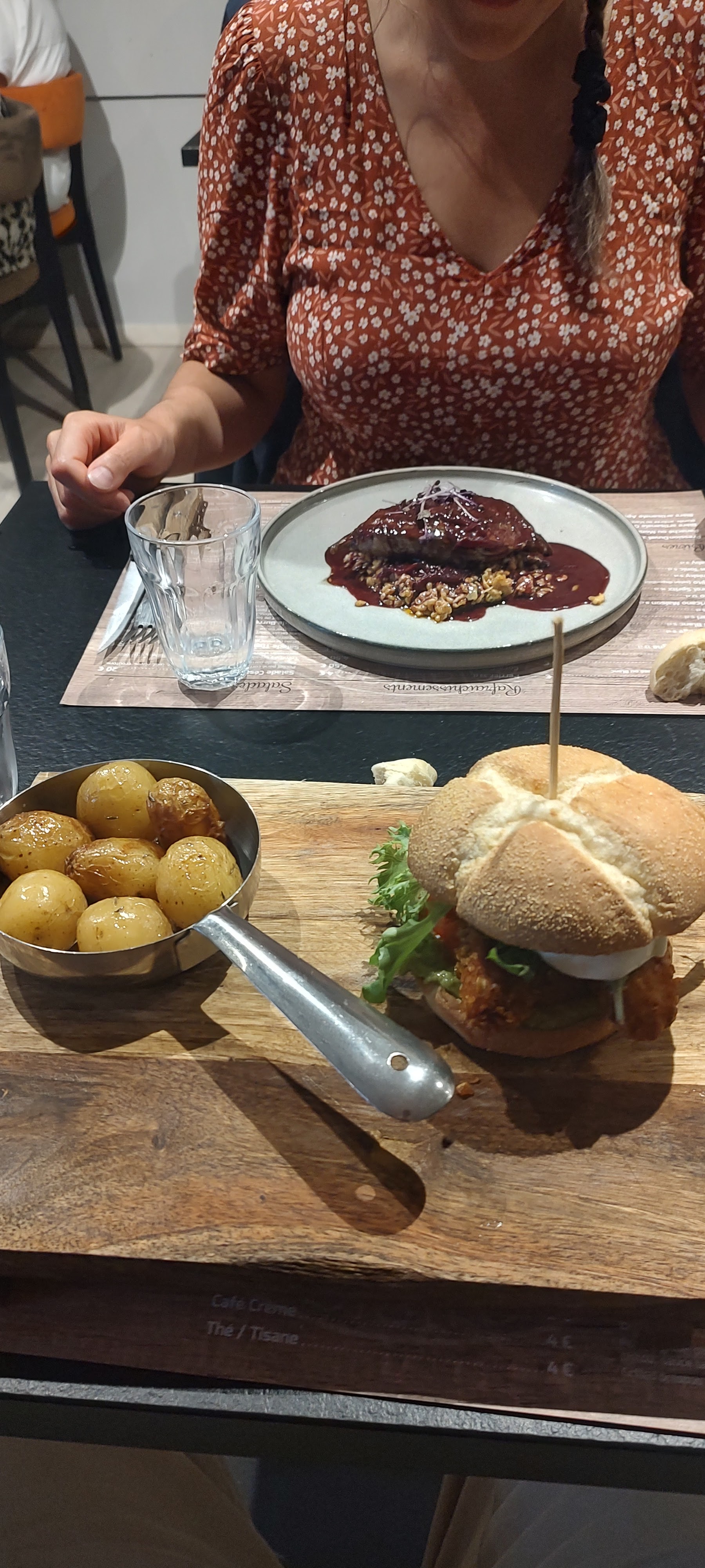 La marmelade de chèvre est exelente et le burger végétarien est original et goûteux. Service très rapide. Un peu cher mais très bon.