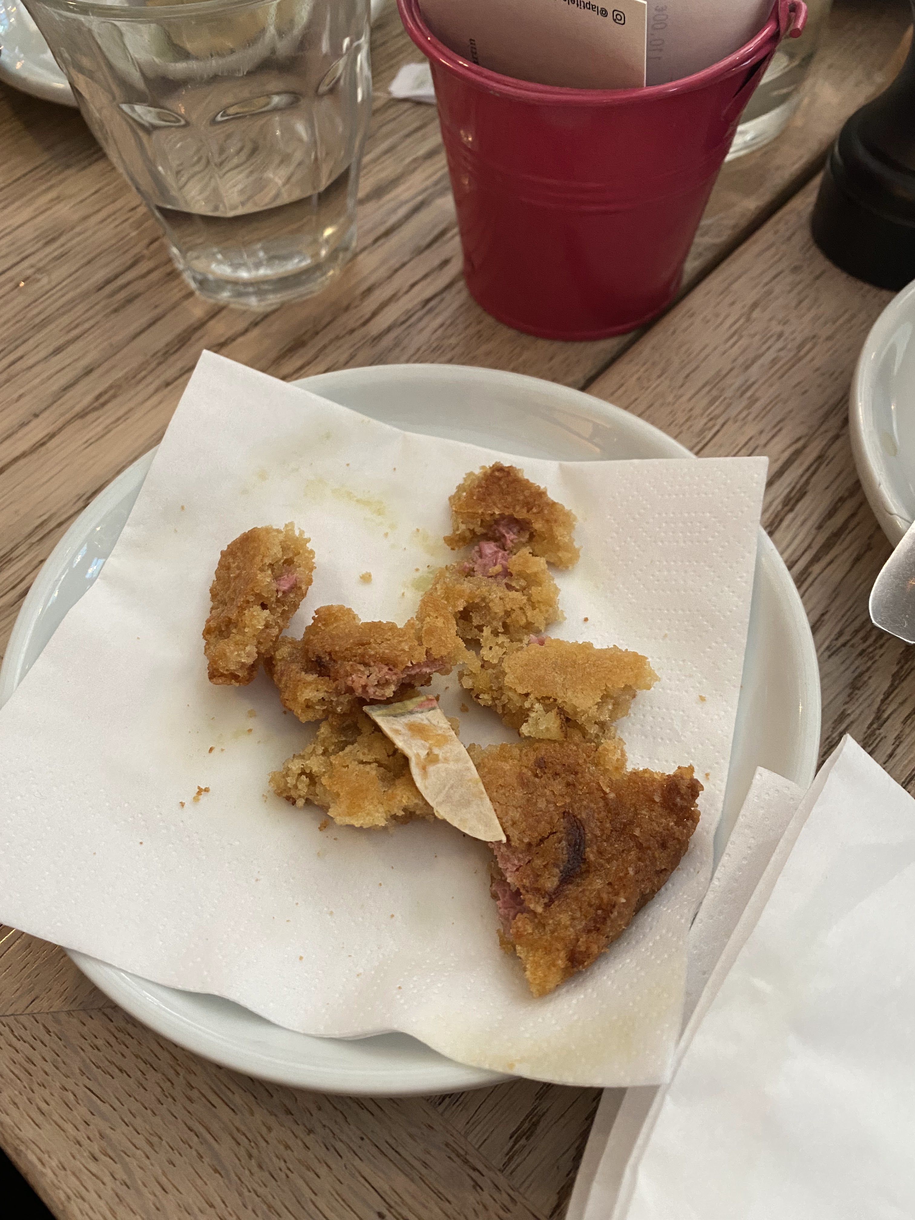 Je me suis rendue à la Petite Louise pour un brunch entre amis et j'ai malheureusement eu la surprise en mangeant mon cookie rubis de tomber sur un morceau de papier cartonné. Je l'ai signalé au serveur qui s'est excusé cependant aucun geste commercial ou remplacement n'a été fait ce que je trouve bien dommage. Le reste du brunch était bon seul cet aspect était à la fois surprenant & décevant.