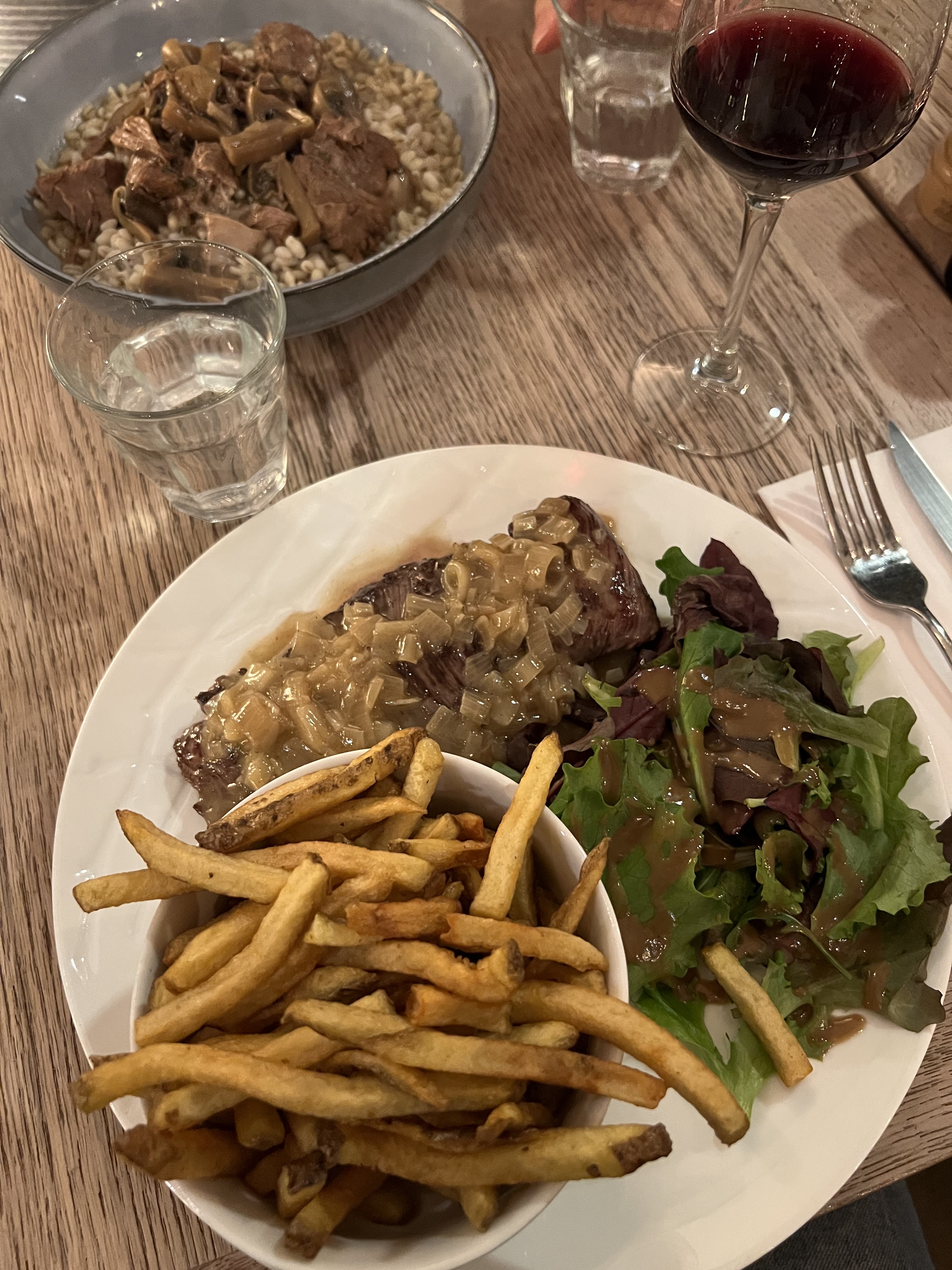 Nourriture délicieuse, vin délicieux, service très rapide et c'était plus spacieux que les autres restaurants/cafés - une de mes expériences culinaires préférées lors de ma visite à Paris.
