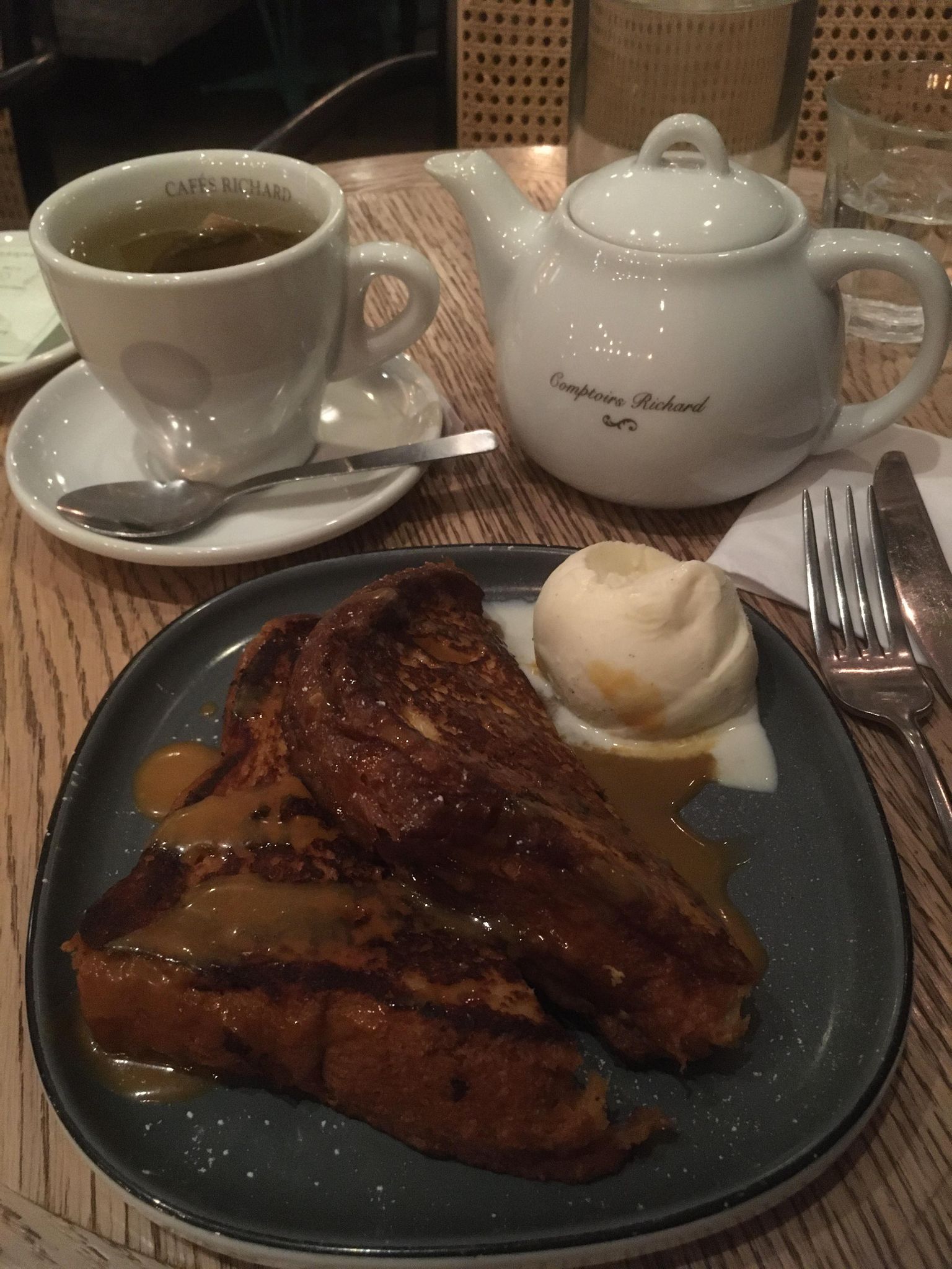 Nourriture très délicieuse !! Personnel super sympa ! Un peu cher, mais je suppose que c'est normal pour Paris. Une photo de mon dessert