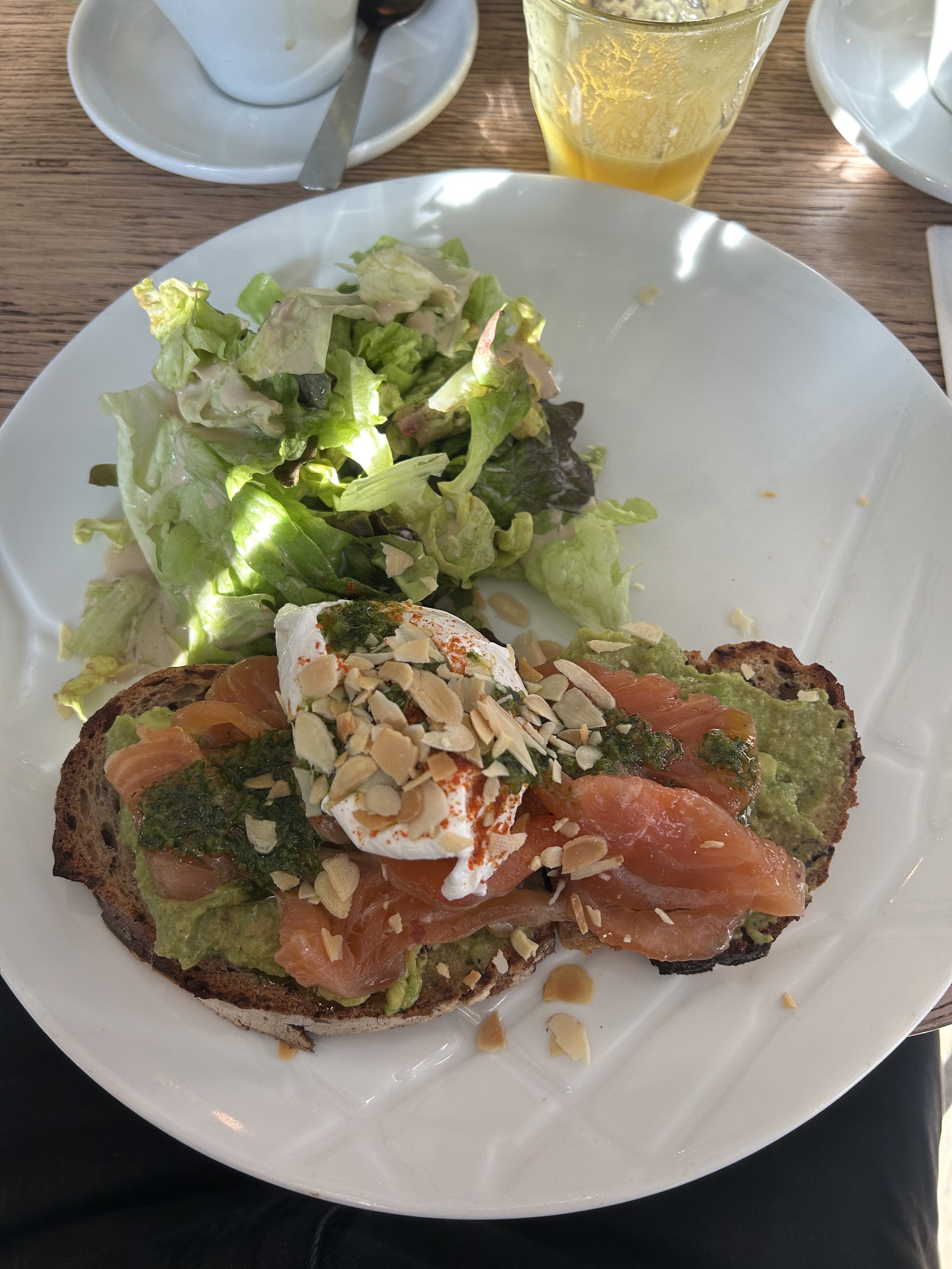 Le serveur super sympa nous sommes venus en train pour la journée à peine descendu hop petit déjeuner dans ce belle endroit le jus d'orange pressé tout frais. Les œufs brouillé le pain les croissants enfin tout était excellent. Je recommande cette endroit