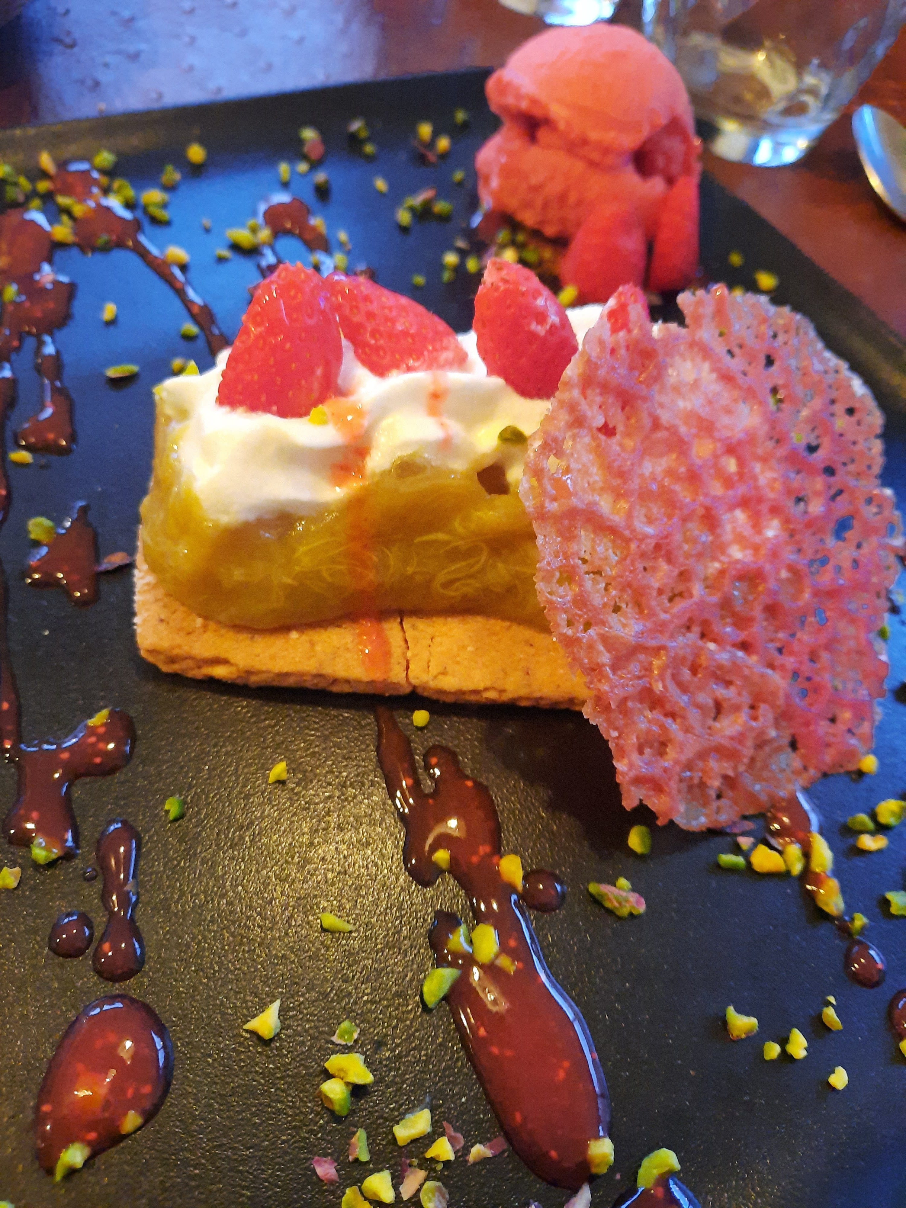 Très bons plats, belle présentation des assiettes et dessert digne d’un chef patissier.