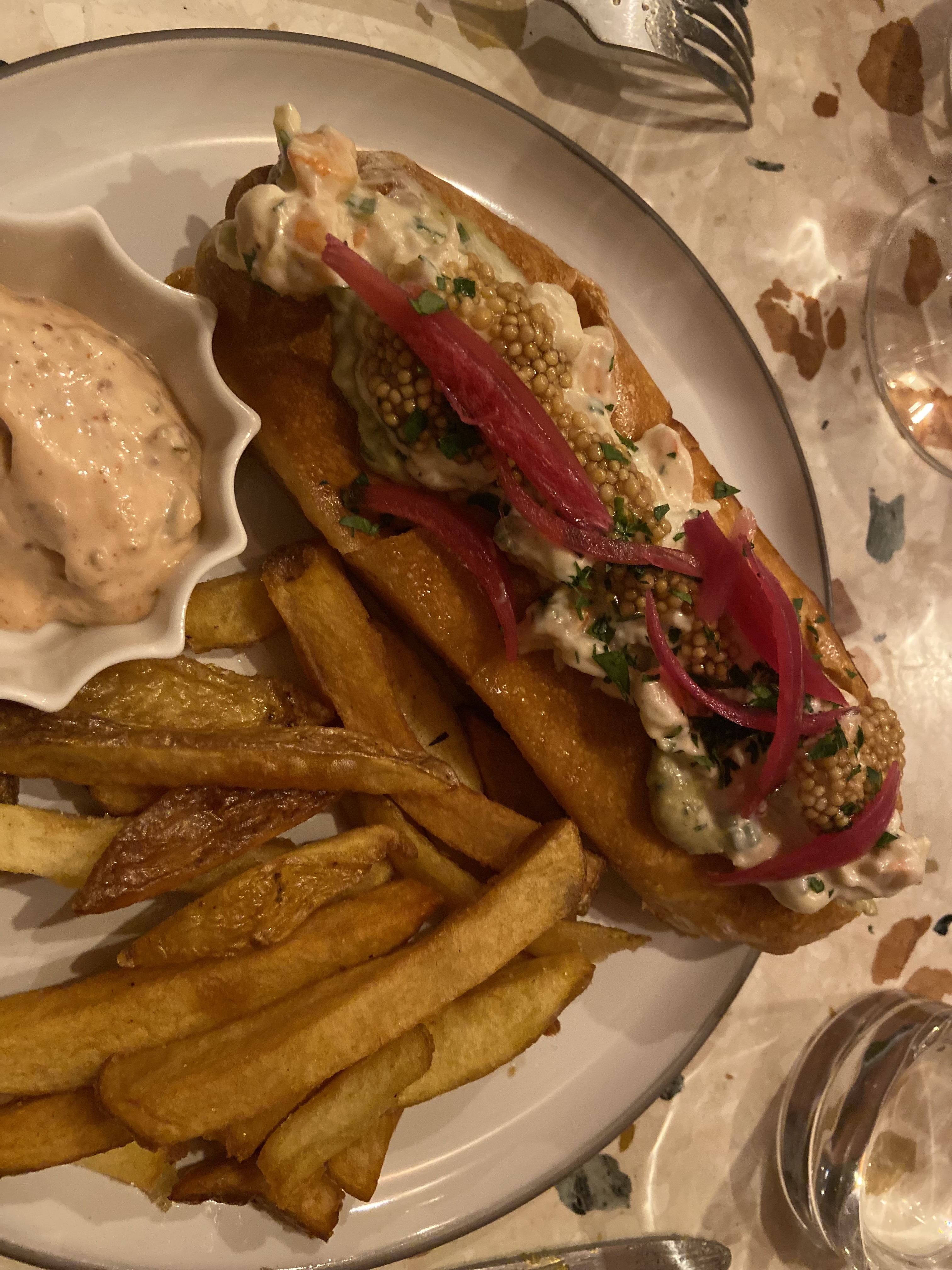 Klein en knus restaurant met open keuken en tafels over twee verdiepingen verspreid. Kleine kaart met beperkt aantal voorgerechten, hoofdgerechten en desserts. Alles vers en ter plekke bereid. Broodje hamburger was vrij vet. Verse pasta met tomaten was helaas niet beschikbaar en werd vervangen door doperwten pesto. Fish and chips was lekker, maar niet bijzonder. Arancini balletjes waren lekker. Prijzen zijn niet te duur. Locatie niet super sfeervol.