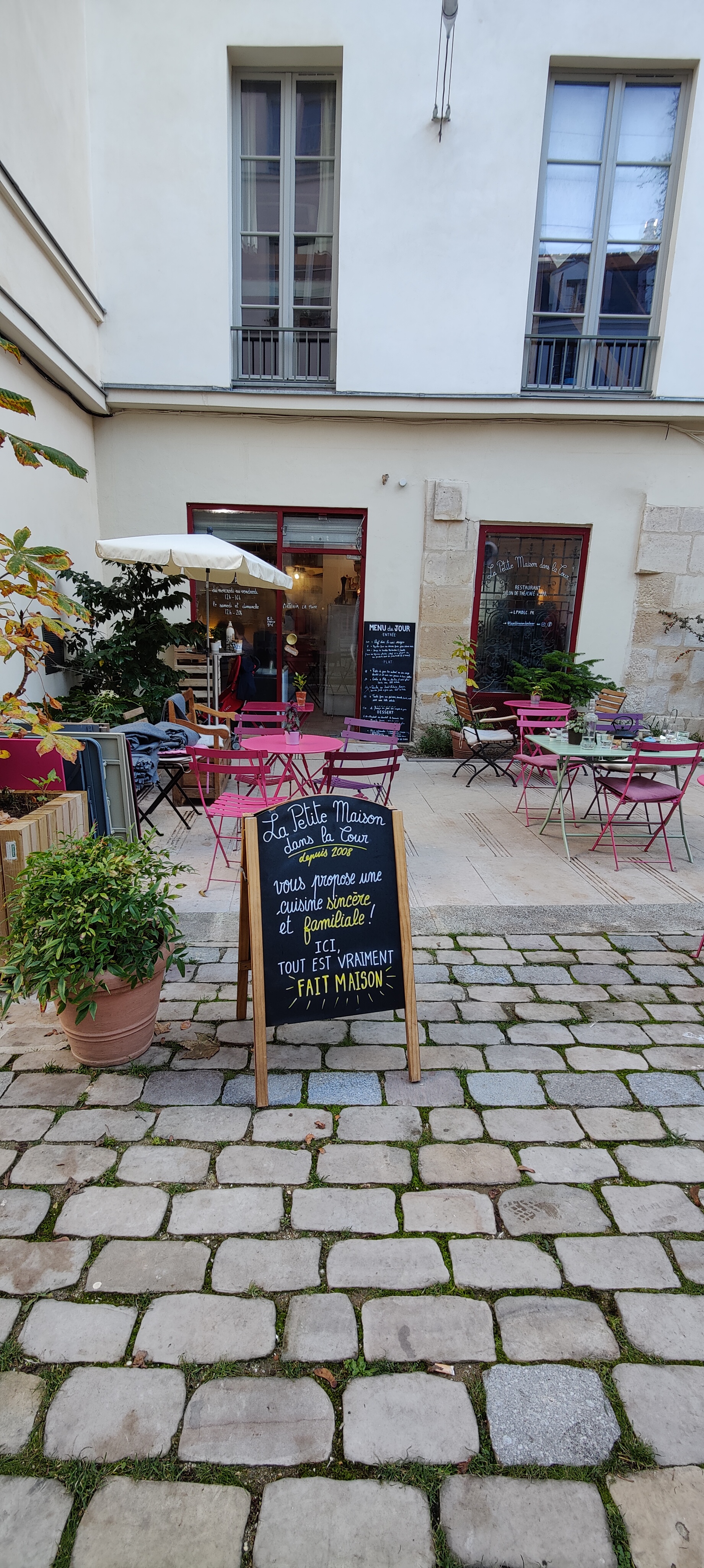 J'ai beaucoup aimé ce restaurant. Il se trouve dans une cour. La salle est très lumineuse et agréable. Et on y mange bien.
