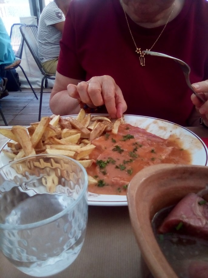 Super repas, comme d'habitude, à La Petite Meule, Chez Patrice et Brigitte 😃 Bravo, on s'est régalés avec en entrées une belle salade au chèvre chaud et miel, ainsi qu'une superbe salade de pêches aux fruits de mer frais et basilic : MA-GNI-FI-QUE😋😋 !! En plat, poulet aux girolles fraîches et frites maison, extra 😜!! On vous le recommande. À bientôt...