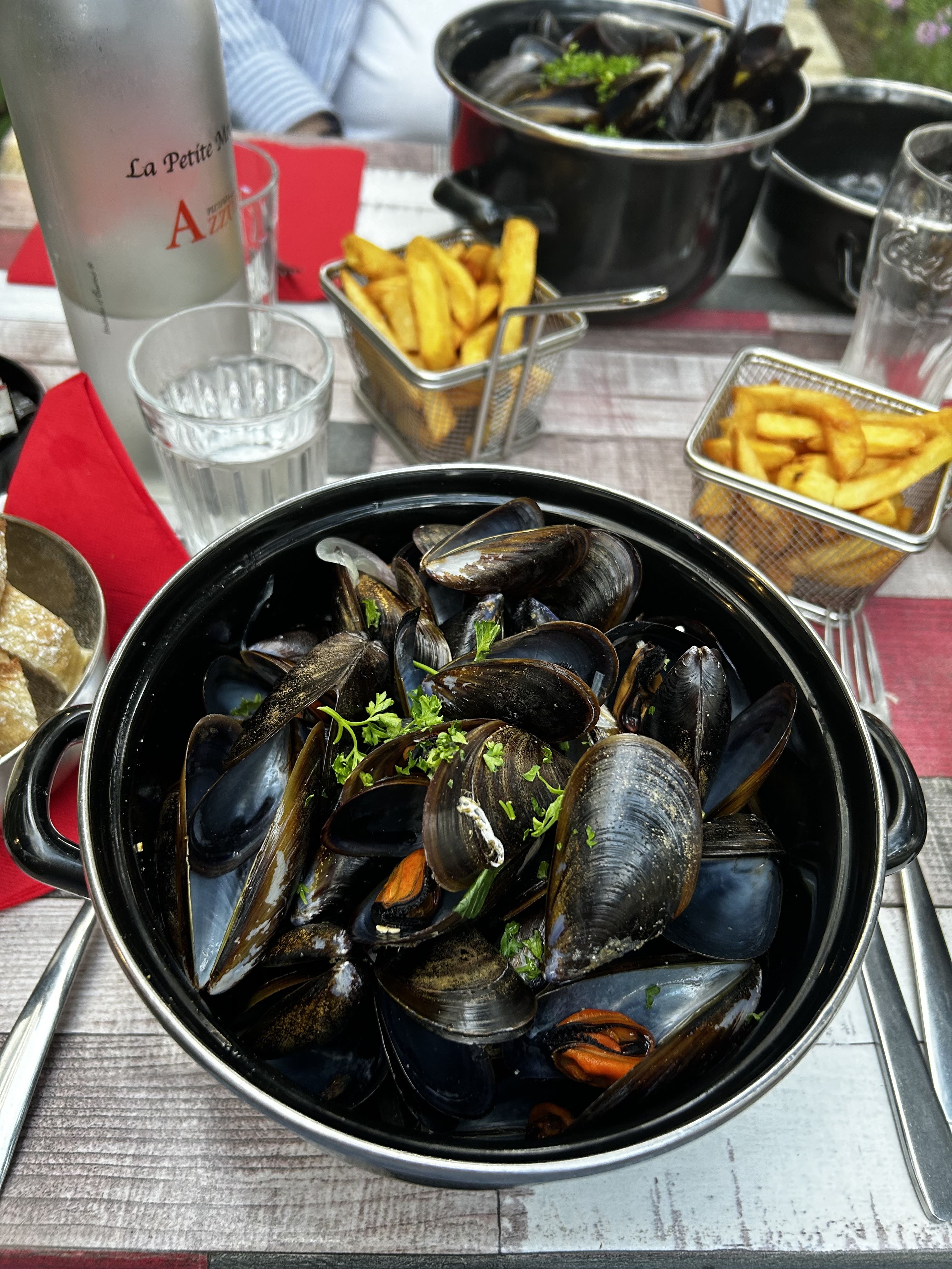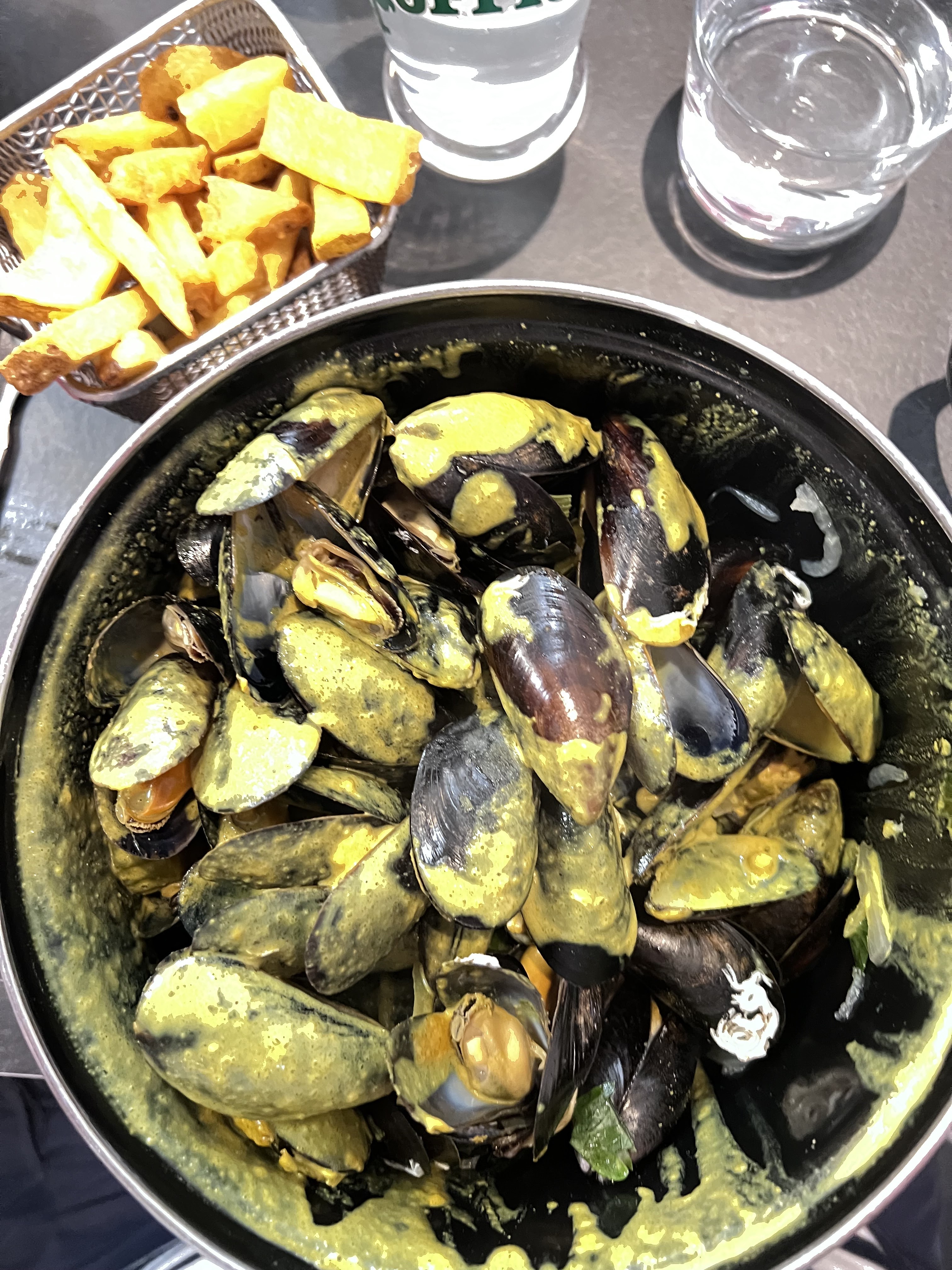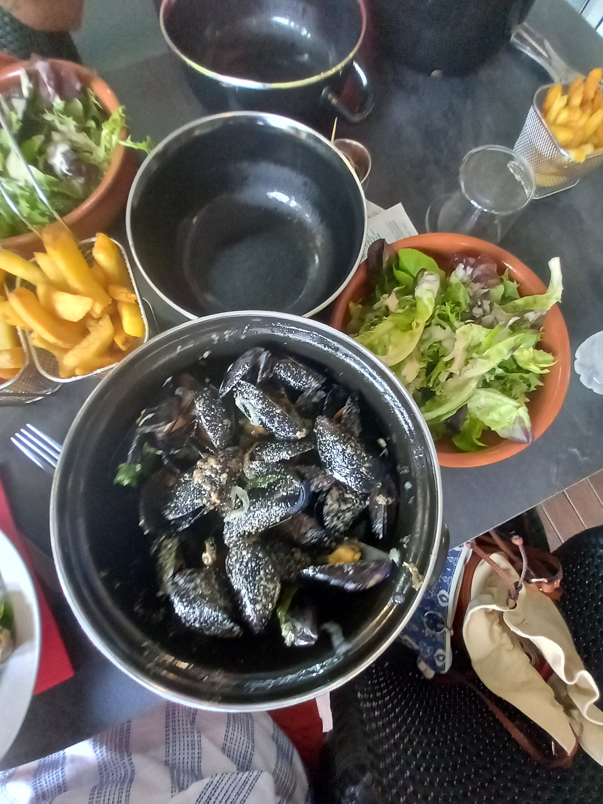 Moules frites généreuses Proposition d'un plaid quand on mange en terrasse et qu'il y fait un peu frais Équipe agréable aimable vraiment sympa
