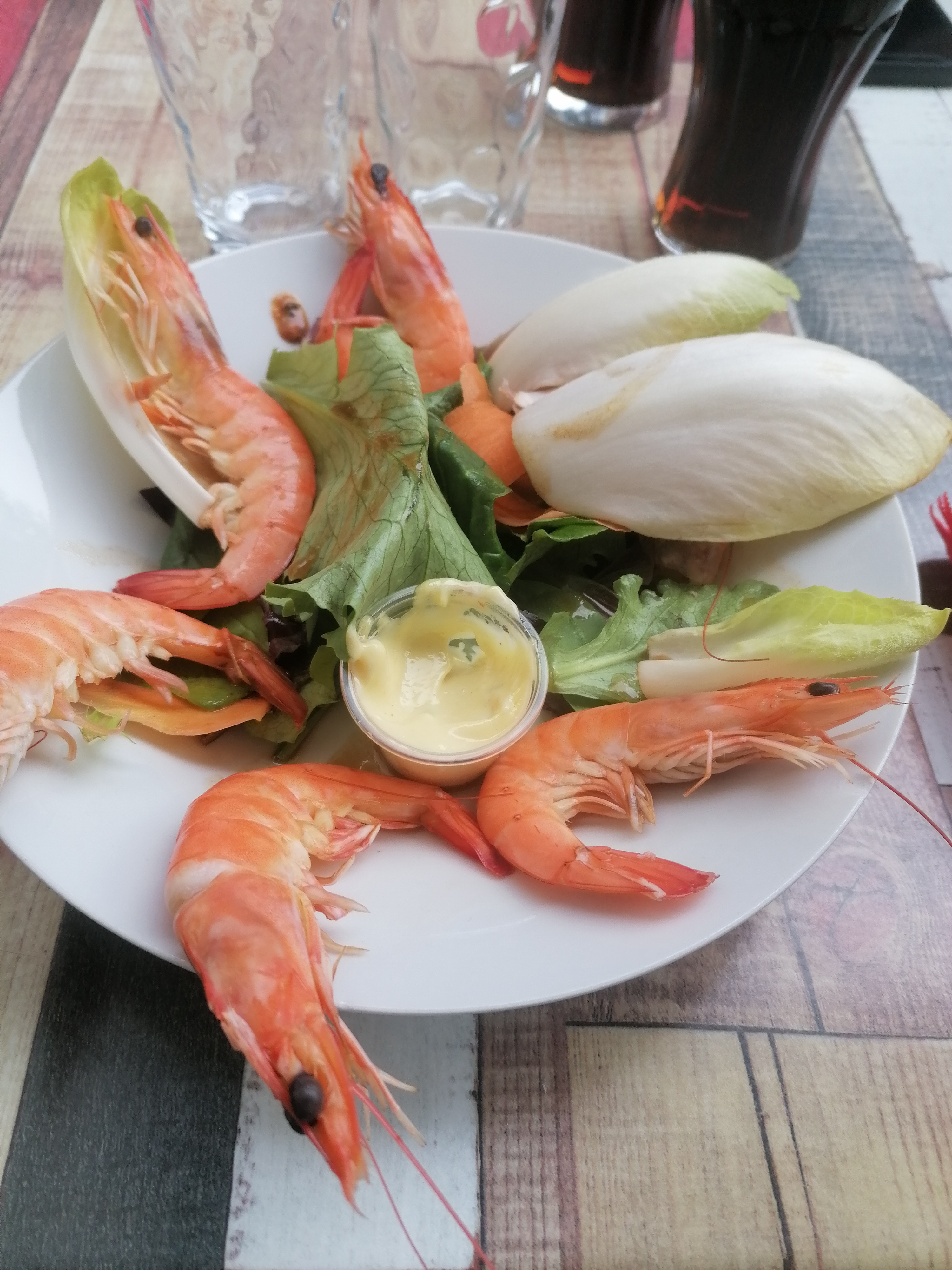 Les moules frites étaient bonnes, le patron adorable, et le rapport qualité-prix très intéressant. En entrée j'ai eu des crevettes servies avec un aioli, qui était incroyable !