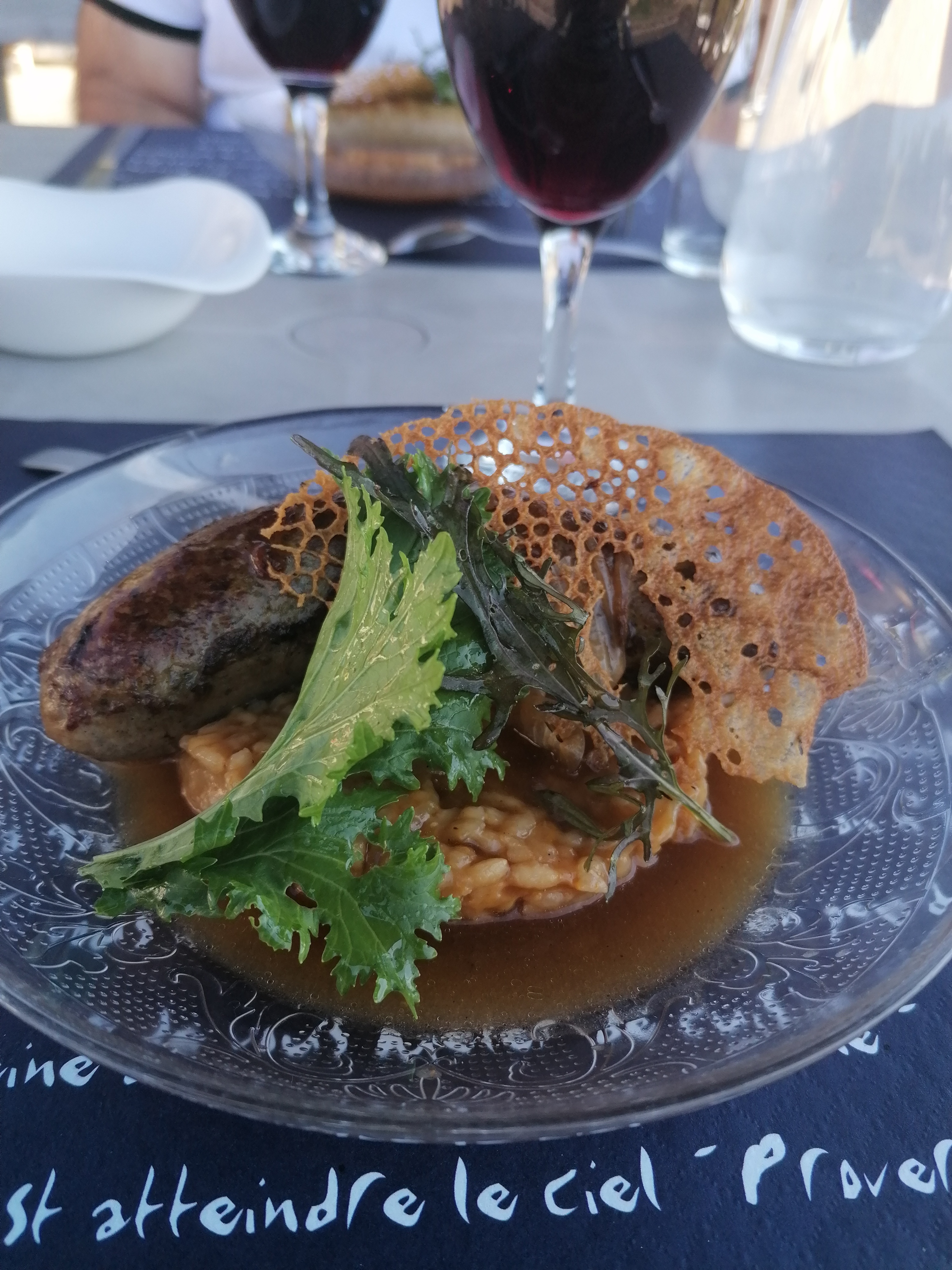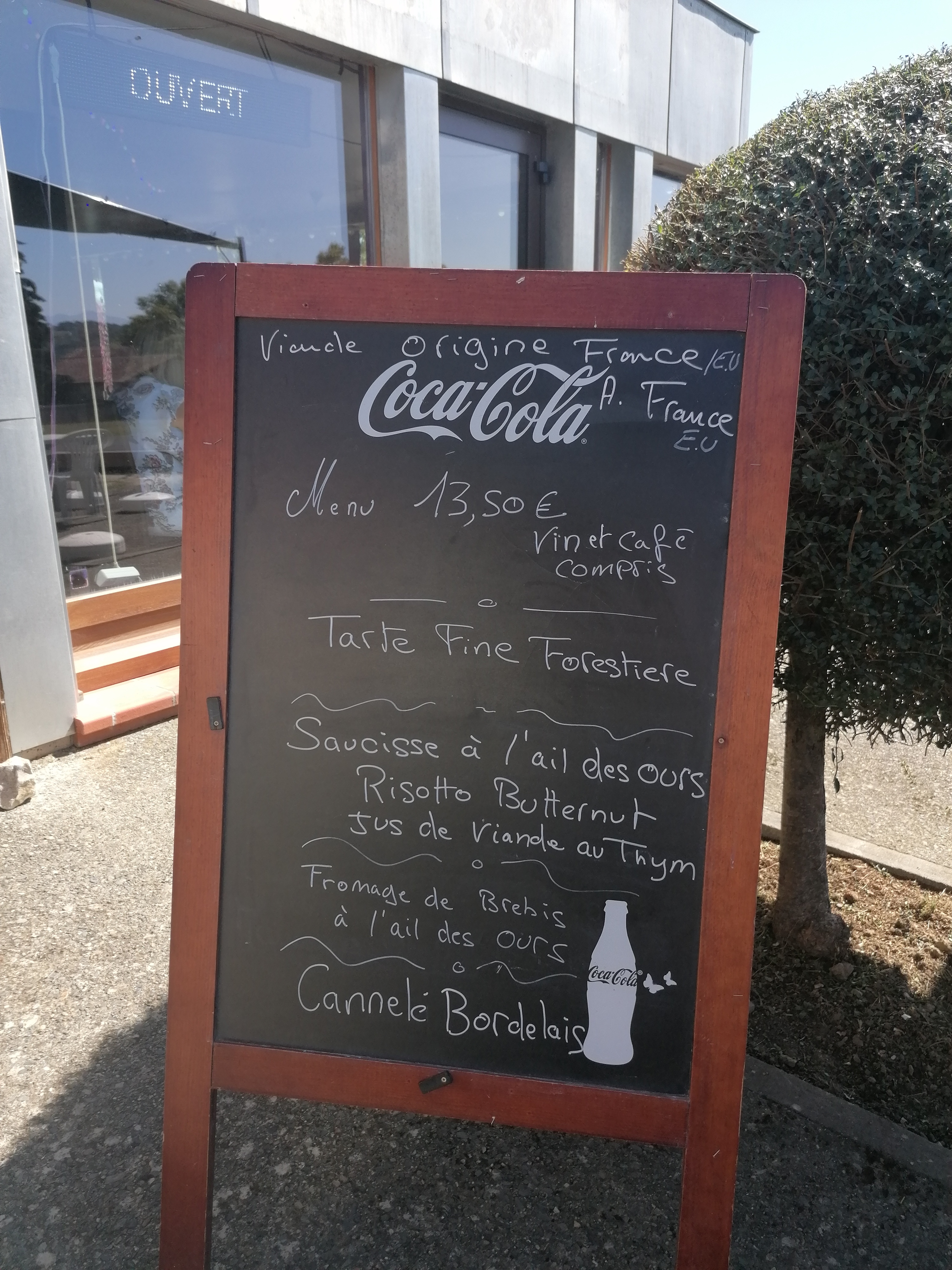 Par un beau temps nous avons déjeuné en terrasse que du bonheur avec une belle ambiance Repas proposé par le chef avec deux choix nous avons bien fait de suivre ses propositions Nous avons pris rendez vous pour une autre expérience