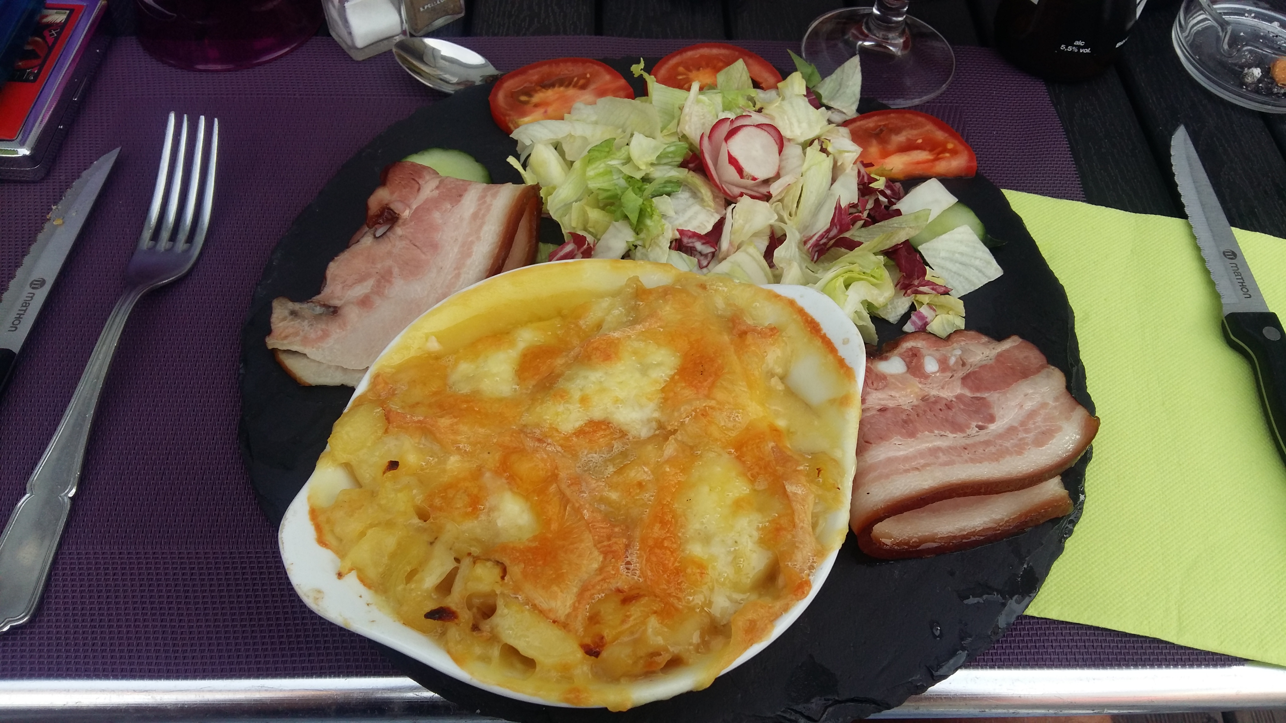 Simple, mais très efficace. Si vous cherchez un petit restaurant sympathique, dans le coin c’est celui-ci qu’il faut. Il y a plusieurs salades pour les petites faims, et pour les grosses faims, il y a les miches vosgienne. De plus, le serveur est sympathique, que ce soit au téléphone ou pendant le service. Par contre attention, pour se garer c’est de l’autre côté du Pont, une petite allée de parking. Un panneau sur le pont indique le parking. Je recommande !