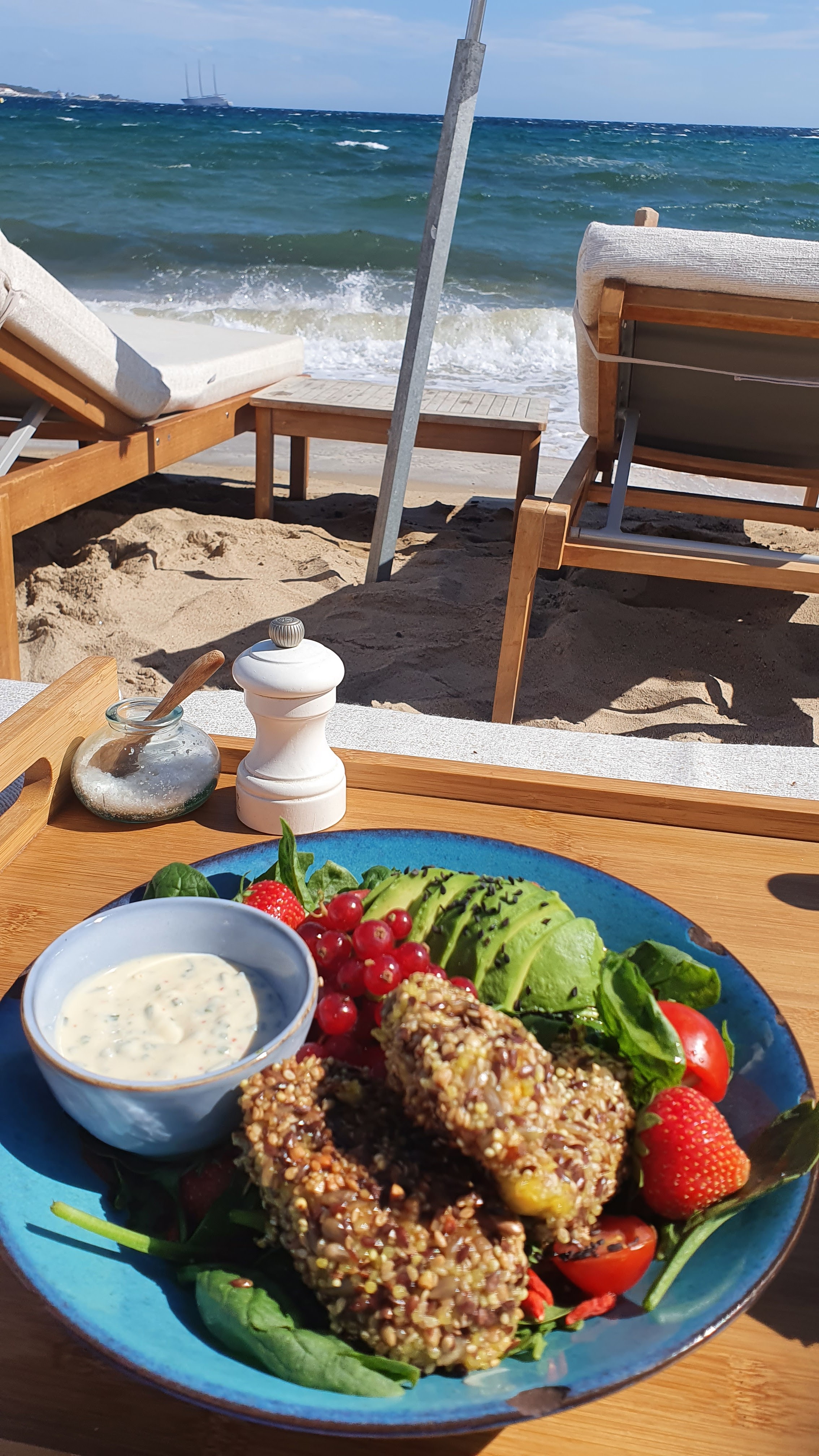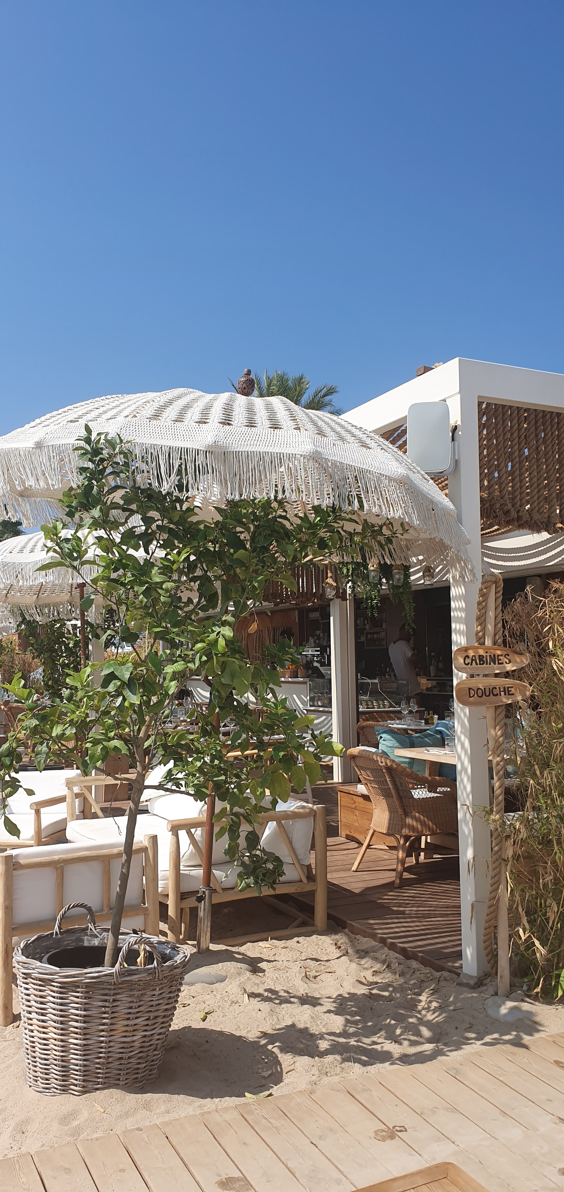 Très jolie plage, belle déco, vaisselle très sympa, nous avons pris deux salades délicieuses et des desserts. Nous avons étaient déçues par les desserts, dommage ils sont beaux mais pas bons.
