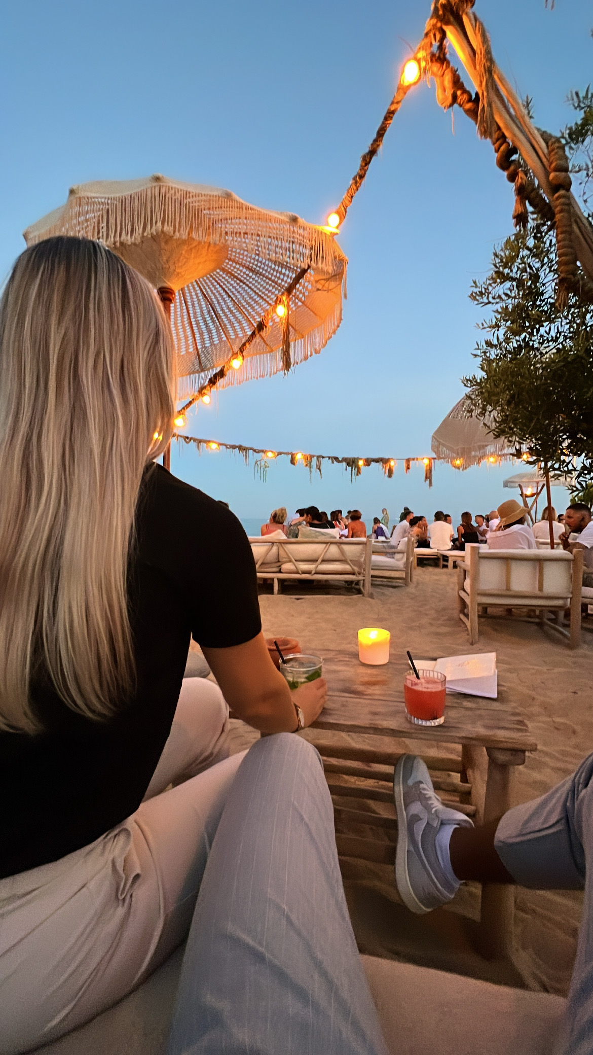 Nous avions réservé deux semaines à l’avance pour la fameuse soirée du dimanche soir. À moins de connaître quelqu’un du Staff ou d’être un polichinelle de la téléréalité, vous ne rentrerez pas tout de suite. En effet, nous avons attendu 1 heure en plein soleil pour pouvoir rentrer, malgré notre réservation. À savoir que nous étions deux garçons accompagnés de 3 magnifiques jeunes femmes. Après une longue attente, nous nous installâmes à notre table, mais 15 minutes plus tard un autre membre du Staff décide de nous changer de table, car des gens sûrement plus recommandables que nous désiraient notre table. Après ce déménagement, nous décidons de commander une boisson alcoolisée afin de nous détendre, mais attention, je vous conseille de vous armer de patience et de courage pour réussir à attraper un serveur, qui sont bien gentils, mais en sous-effectifs. Comparé à la concurrence les prix sont plutôt raisonnables. En ce qui concerne l’ambiance, le disc-jockey était d’un très bon niveau et le cadre idyllique. Lorsque vous aurez réussi à rentrer et à faire votre commande avec un peu d’alcool, vous passerez une très bonne soirée.