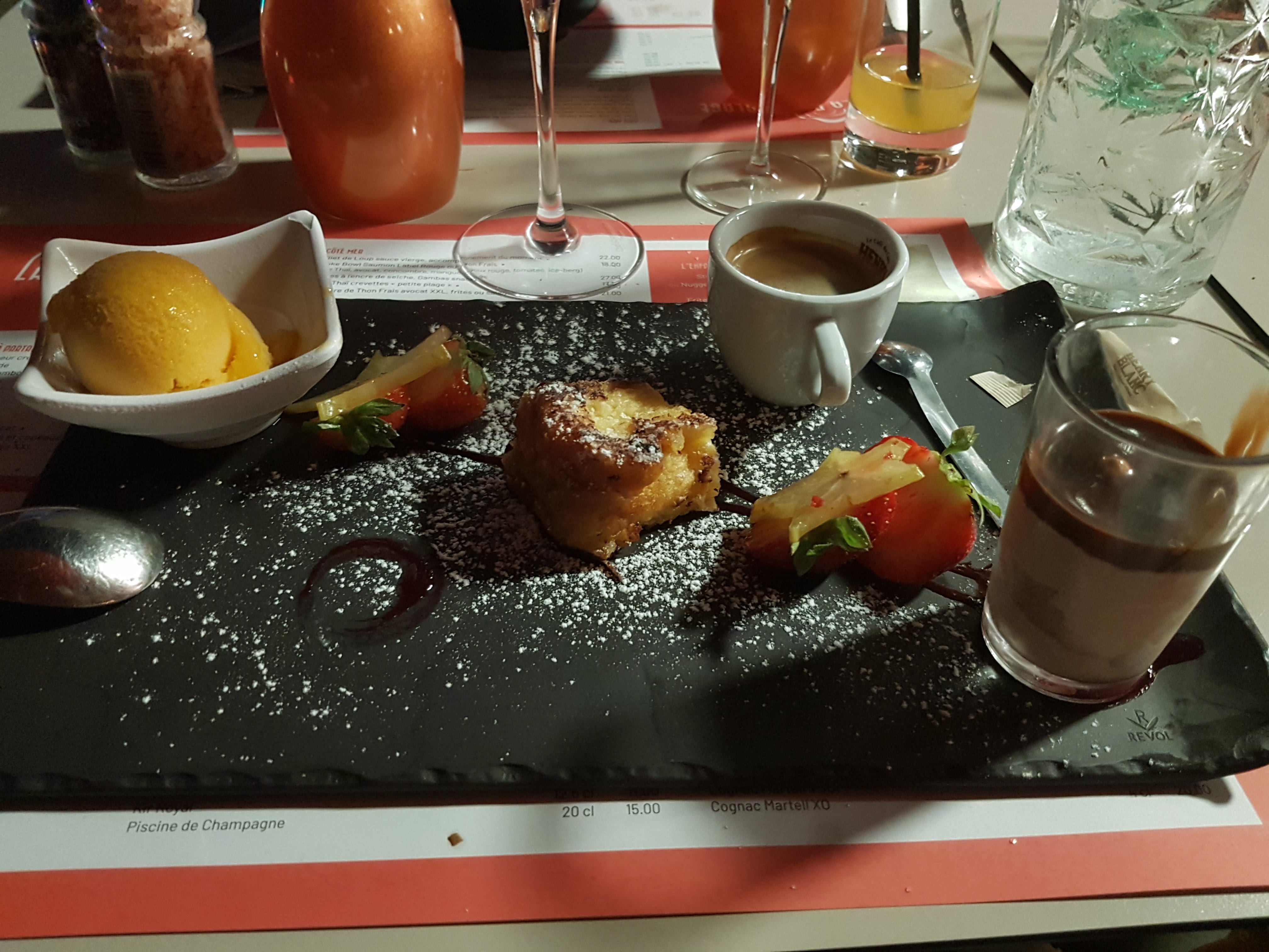 Les plats n ont pas tous été servis en même temps dommage Sinon tres bon je recommande !