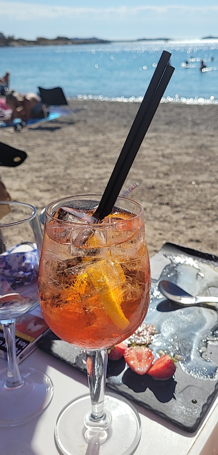 Un régal, entrée poêlée de poulpes puis plat pluma de cochon/polenta. Vous ajoutez à ça une bouteille de rosé domaine Miraval de Mr PITT. Bon ça c’est l’assiette l’accueil est pro et charmant, la promesse du cadre dans le nom du restaurant est tenue…sur la plage avec en prime le coucher de soleil. 140€ pour 2 personnes avec suggestion du jour 1/2 homard grillé pour mon invitée , vraiment top et dépaysant avant le rush des estivants.