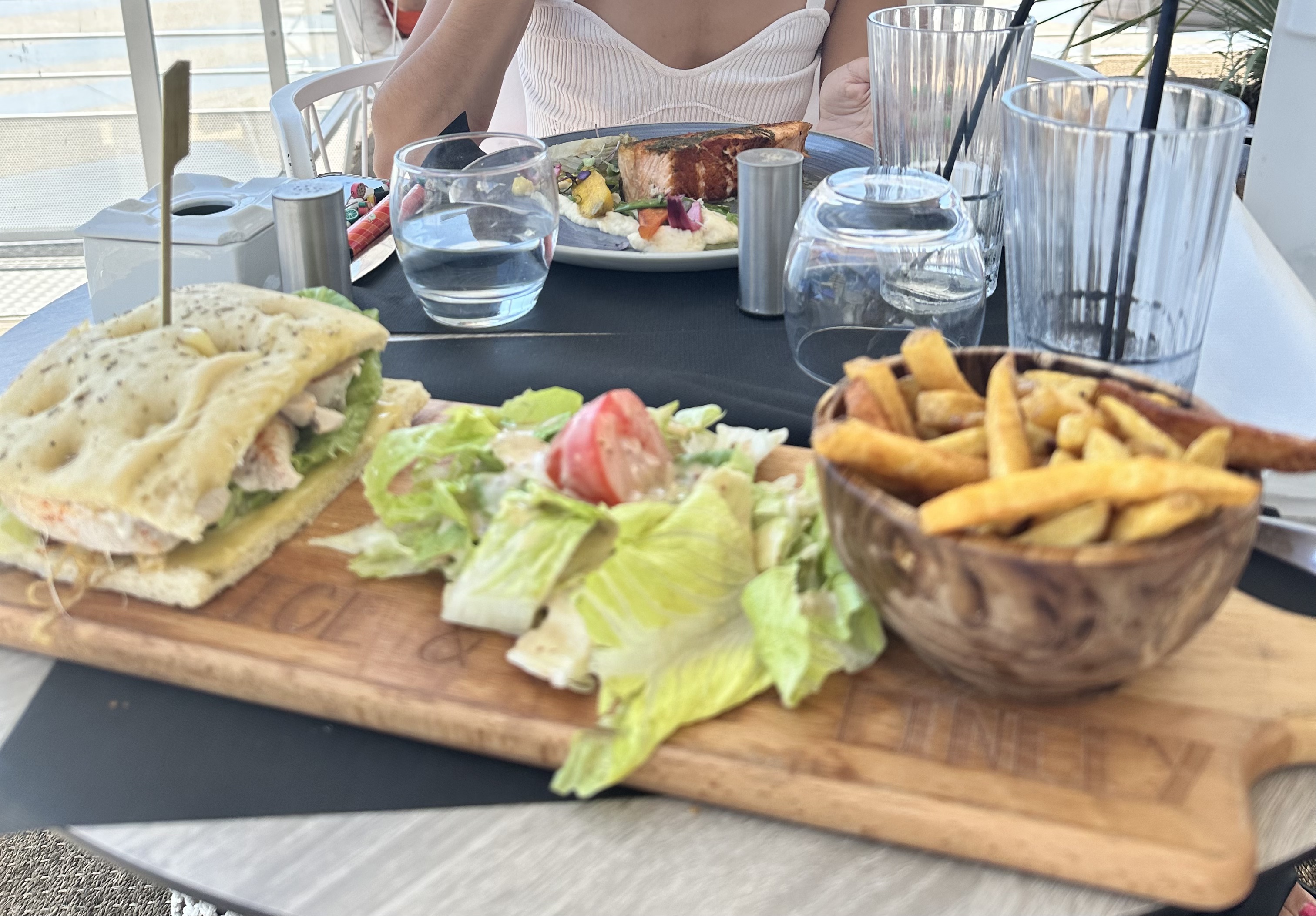 Le cadre est très agréable en bord de mer, les salades sont très copieuses et plutôt bonnes . Nous sommes venues à trois (dont une enfant) végétariennes et il nous a été proposé des alternatives pour remplacer la charcuterie ❤️Toutes le personnel est très sympathique et c'est assez rare pour le préciser ils ont tous été à l'écoute de ma fille de 5 ans ce qui est vraiment très agréable. Mention particulière pour Alex qui nous a servi et qui est très professionnelle et sympathique.