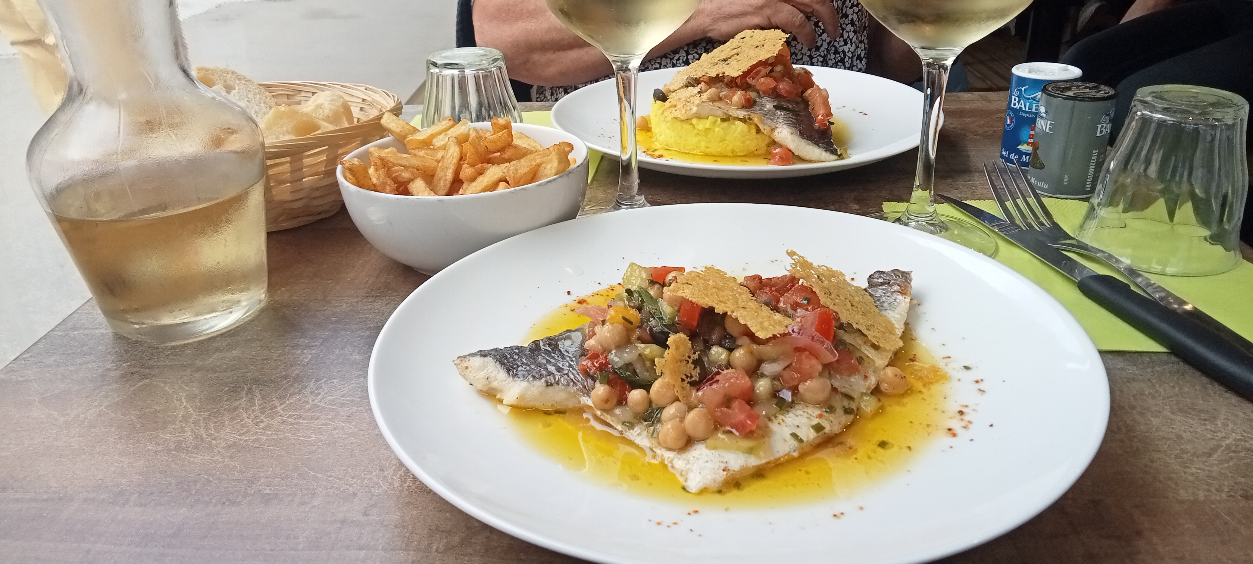 Sympathique détente en famille au bord de la mer, dégustation de poissons et vins excellents.