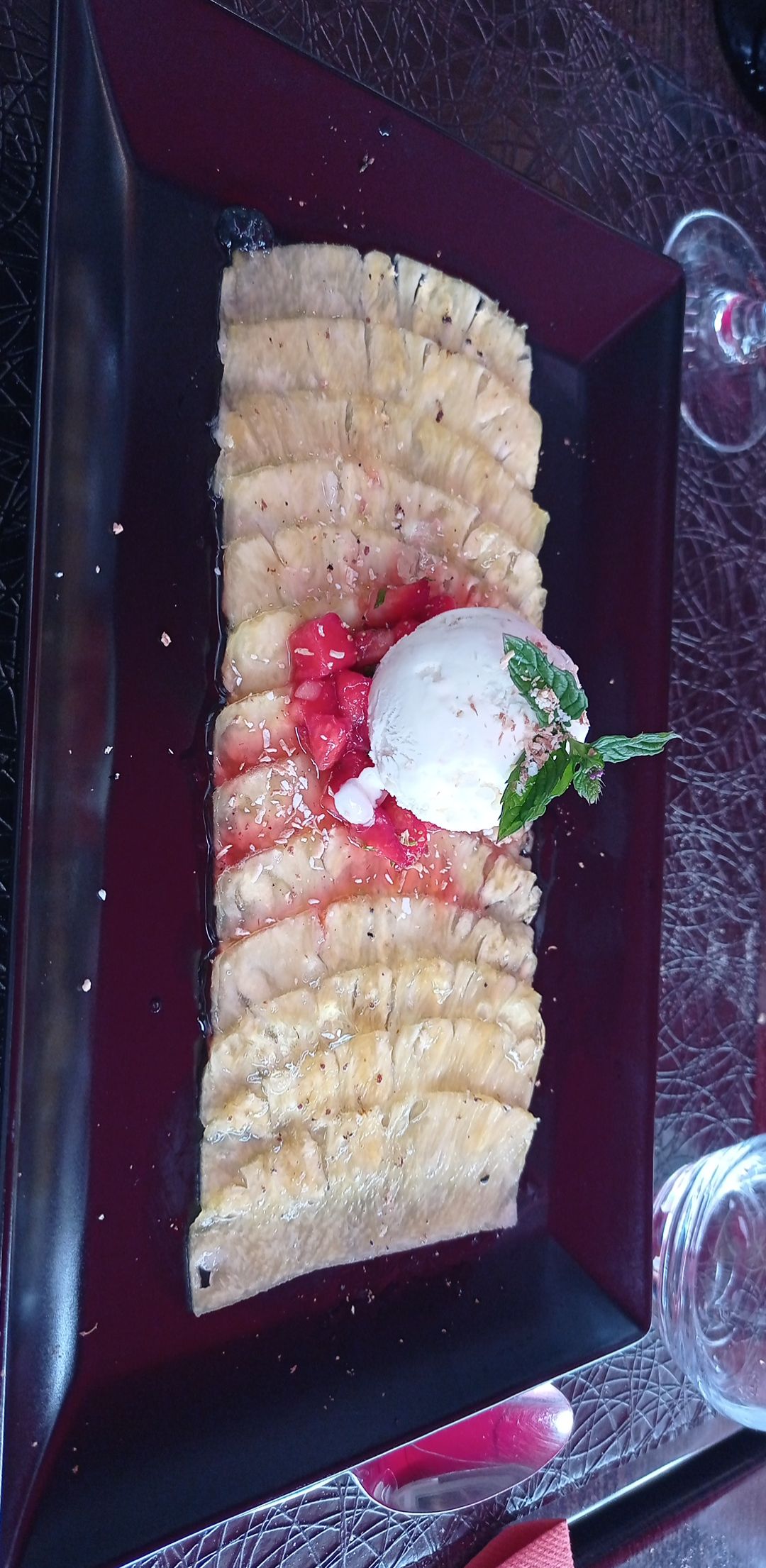 Accueil très agréable à notre arrivée et durant le repas ☺️ Tous les plats de la carte avaient l'air délicieux mais il fallait bien faire un choix 😉 Mon gravlax de saumon et mon tartare de boeuf étaient vraiment bons et leurs accompagnements légers et bien assaisonnés ! Mention spéciale pour le dessert, le carpaccio d'ananas avec ses fraises au basilic... 🥰✨ Le spritz en apéro était parfait ! Pas noyé dans de l'eau et des glaçons comme on peut le voir dans les bars et restaurants, donc PARFAIT ! Mon conjoint et moi avons passé un très bon moment, merci à l'équipe pour l'accueil et le repas ! 🙏✨