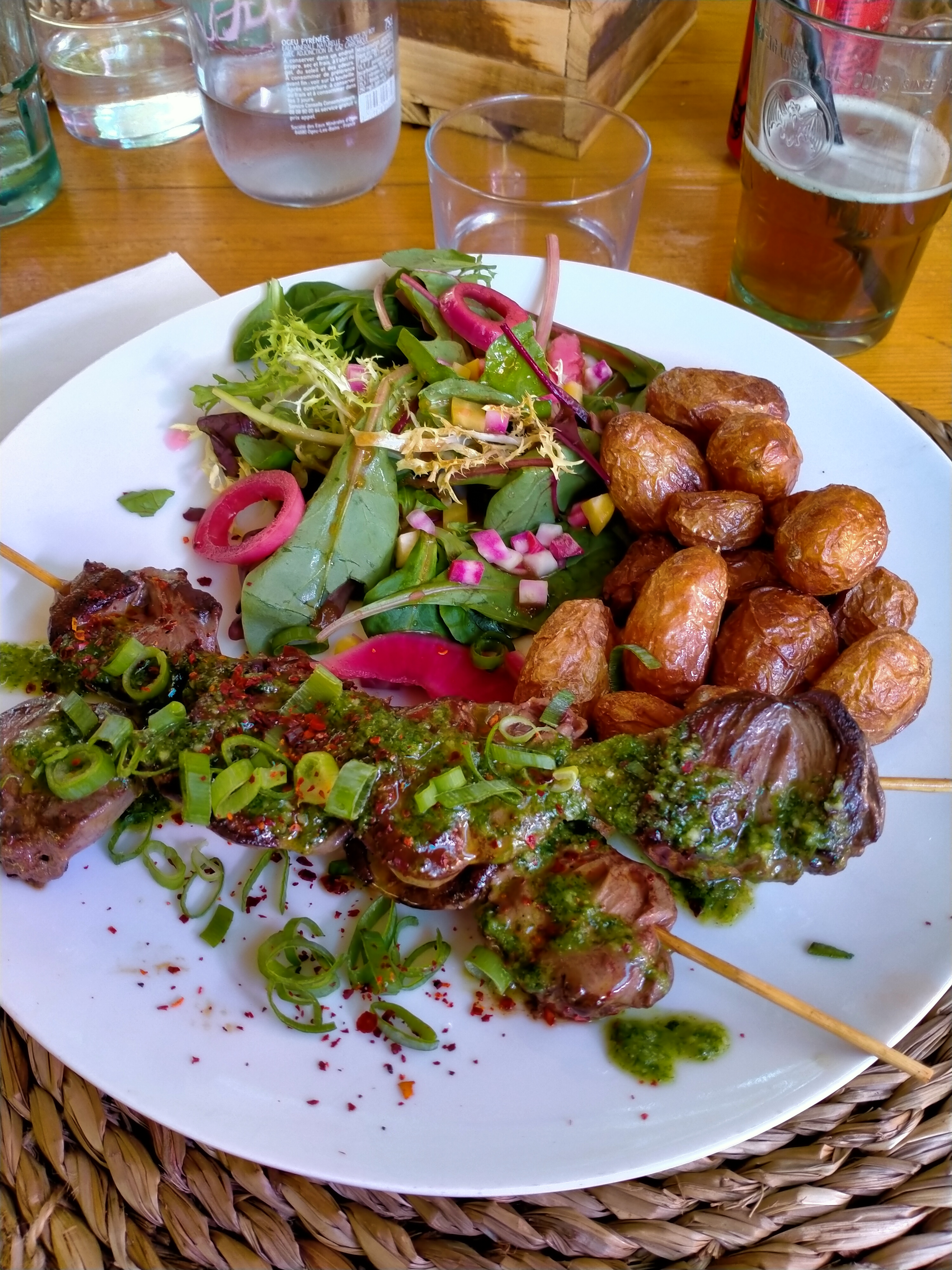 Déjeuner début Août. Super localisation et vue sur le lac, cadre agréable avec une très belle décoration et bel aménagement. Les plats sont très bons , cuits au barbecue, poulet et boeuf excellent. Quantité suffisante. Serveuse agréable. Un tout petit peu cher par contre d'où 4 étoiles.