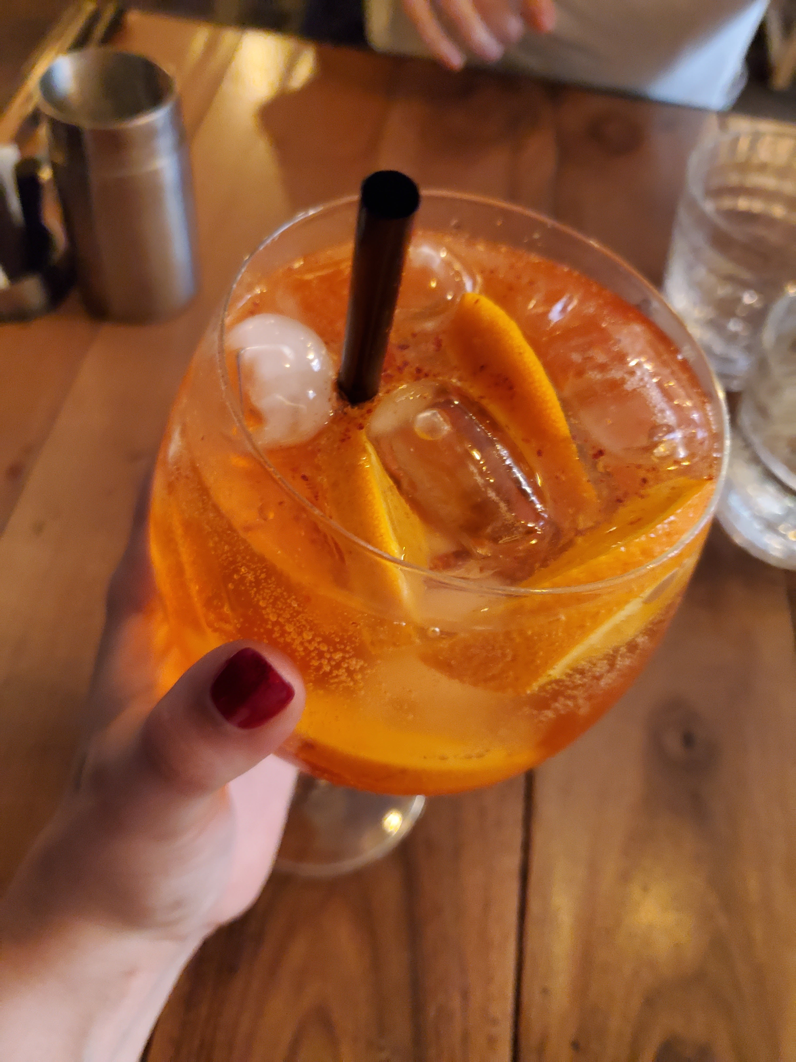Je le recommande vivement, réservez à l'avance ! Une expérience inattendue et agréable. La nourriture est tout simplement délicieuse, le service est extrêmement sympathique et arrangeant. Nous n'avons pas réservé car nous ne savions pas à quel point l'endroit était populaire. Pourtant, nous nous sommes assis et servis. J'ai eu du gaspacho et du tartare de bœuf, tous deux incroyablement bons. Les spiritueux Aperol ont aidé à se détendre après une marche touristique extrême. Les enfants ont également eu beaucoup de frites à leur satisfaction. 5 étoiles, sans aucun doute.