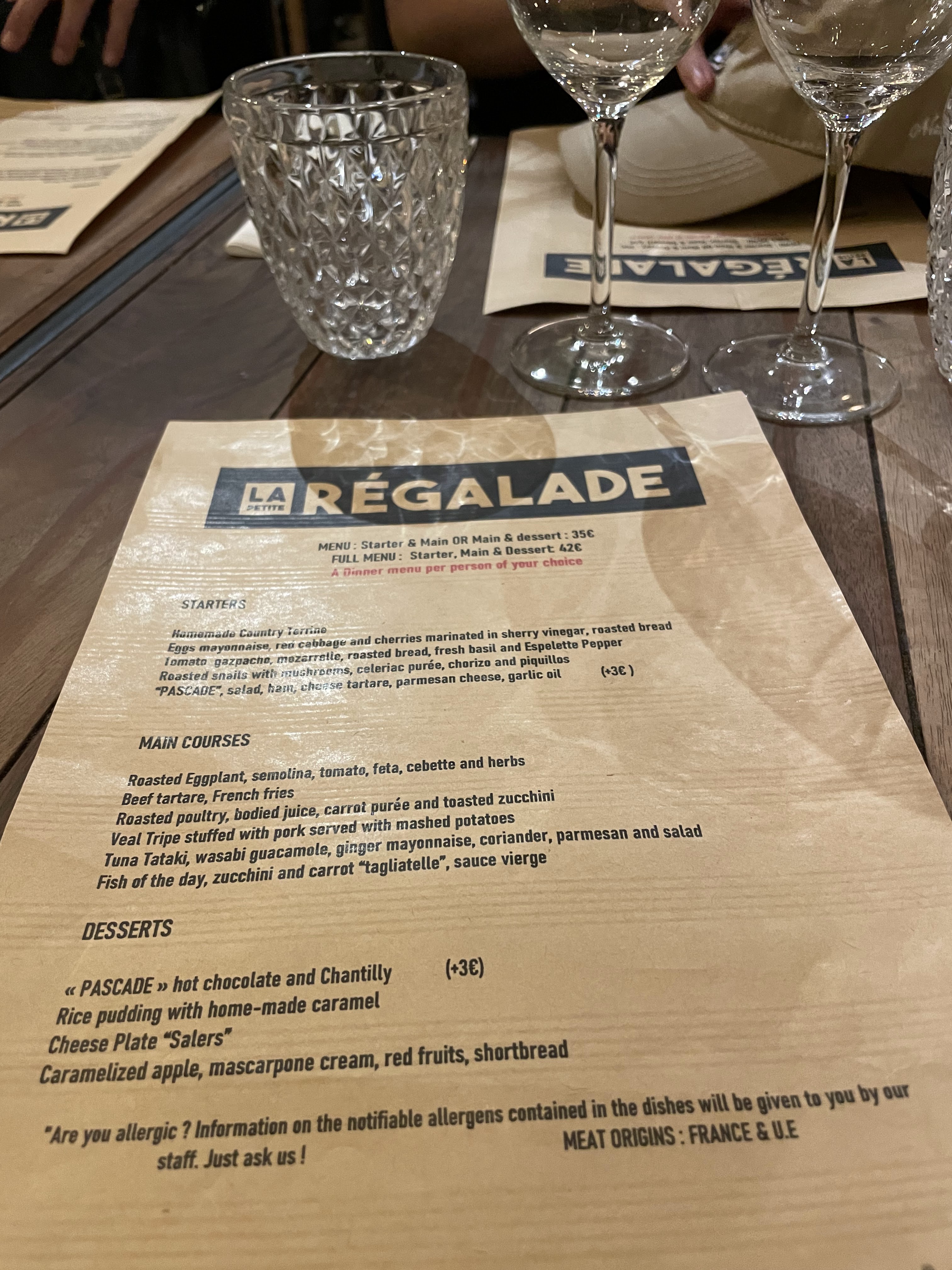 Très belle découverte lors de notre court séjour à Paris. Proche de notre logement et ambiance parfaite pour retrouver des amis. Dîner à 4 où tout le monde s est régalé ! La petite régalade, merci à tous pour ce bon moment !