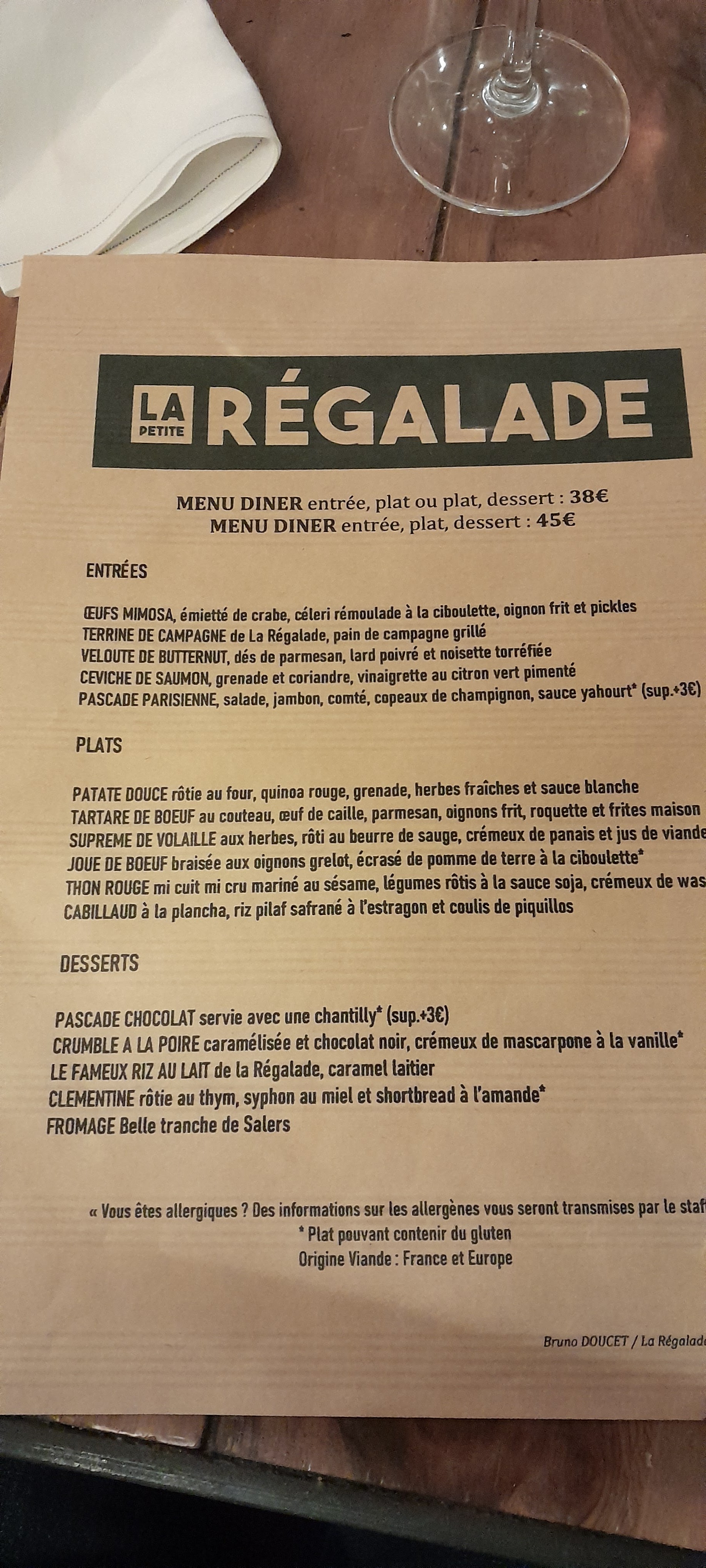 Vous voulez profiter d'un repas de belle facture avec des produits frais pour un prix maîtrisé, vous ne le regretterez pas à la Petite Régalade. Jean et son équipe sauront s'occuper de votre bien être. Allez déguster et régaler vos papilles.