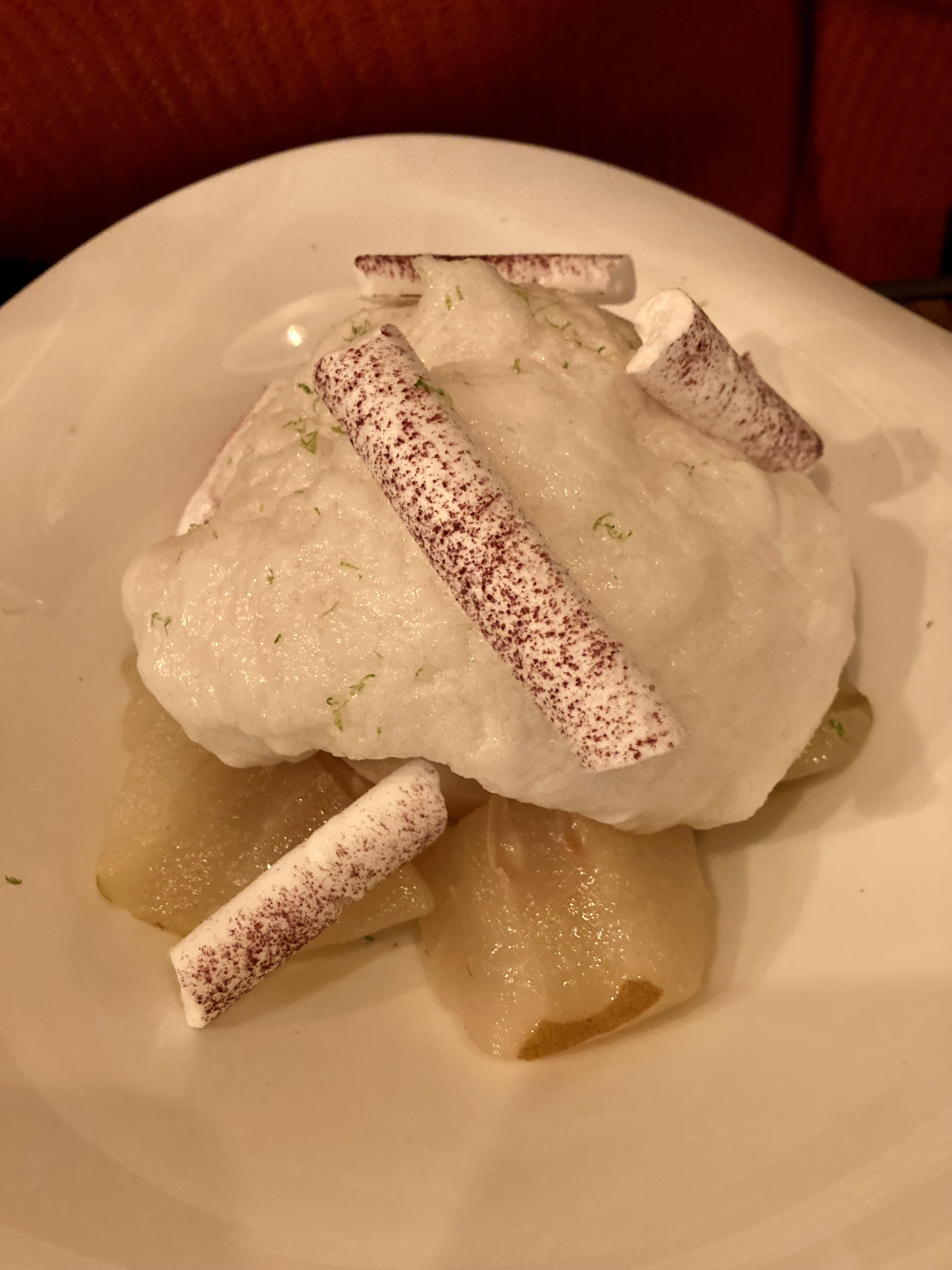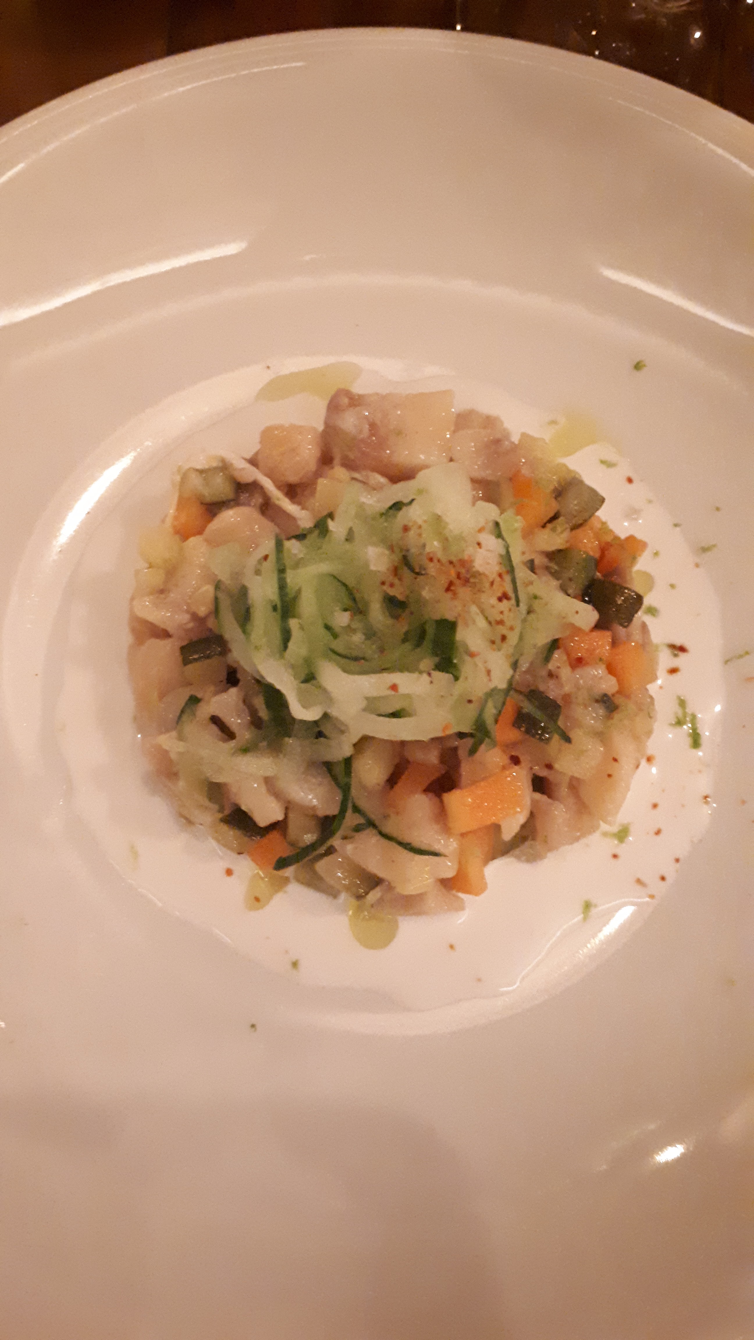 J'ai mangé à plusieurs reprises dans ce restaurant, la carte changeant régulièrement. J'aime le concept, l'association des saveurs, le volume de la pascade, le goût sucré de la pascade qui n'enlève rien au goût du salé. Le confit cru m'a fait penser à une montagne saupoudrée de neiges, toute une histoire dans l'assiette. Un moment très agréable