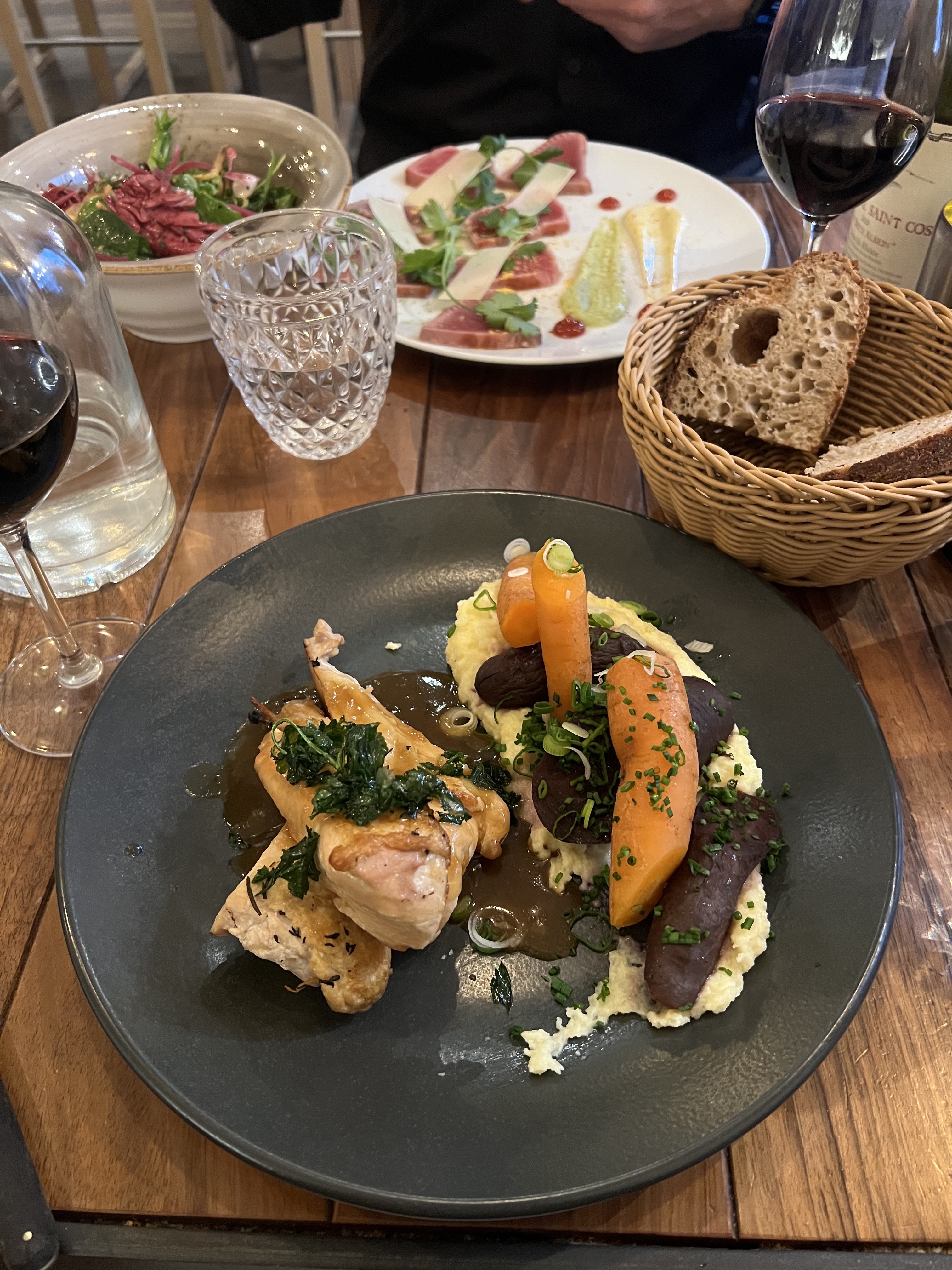 Nous avons apprécié la terrine et les escargots. Cependant, le filet de lieu était légèrement trop salé et le suprême de poulet un peu sec.