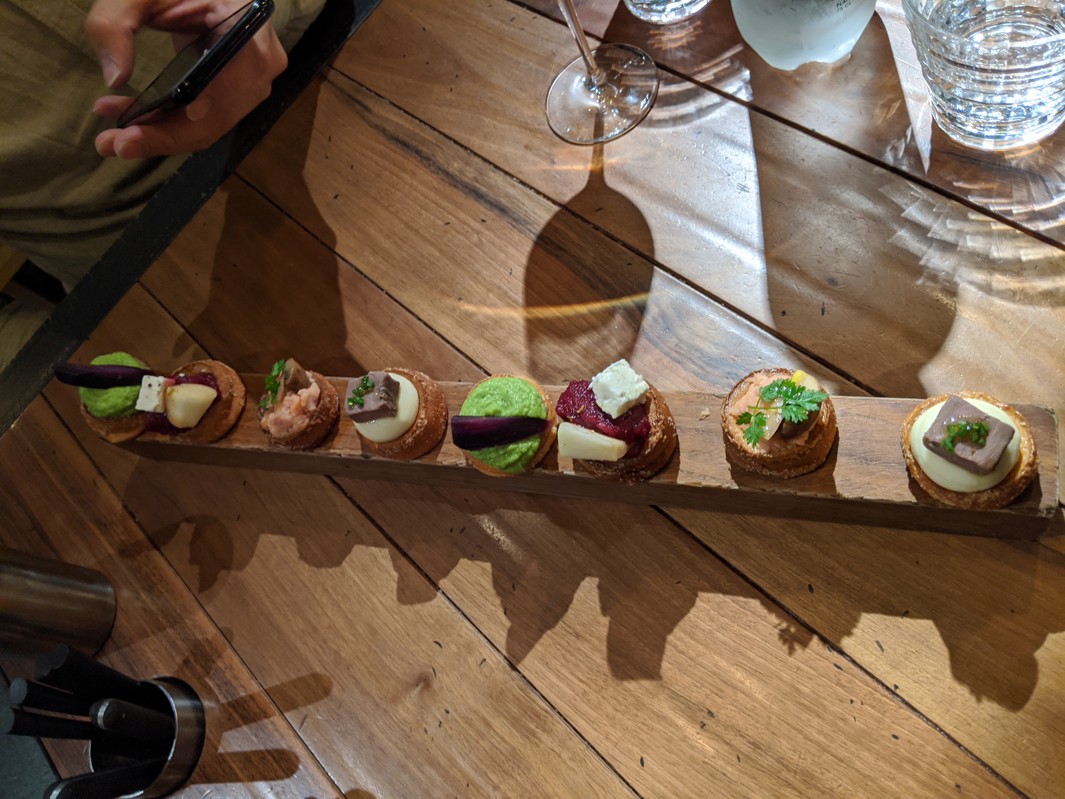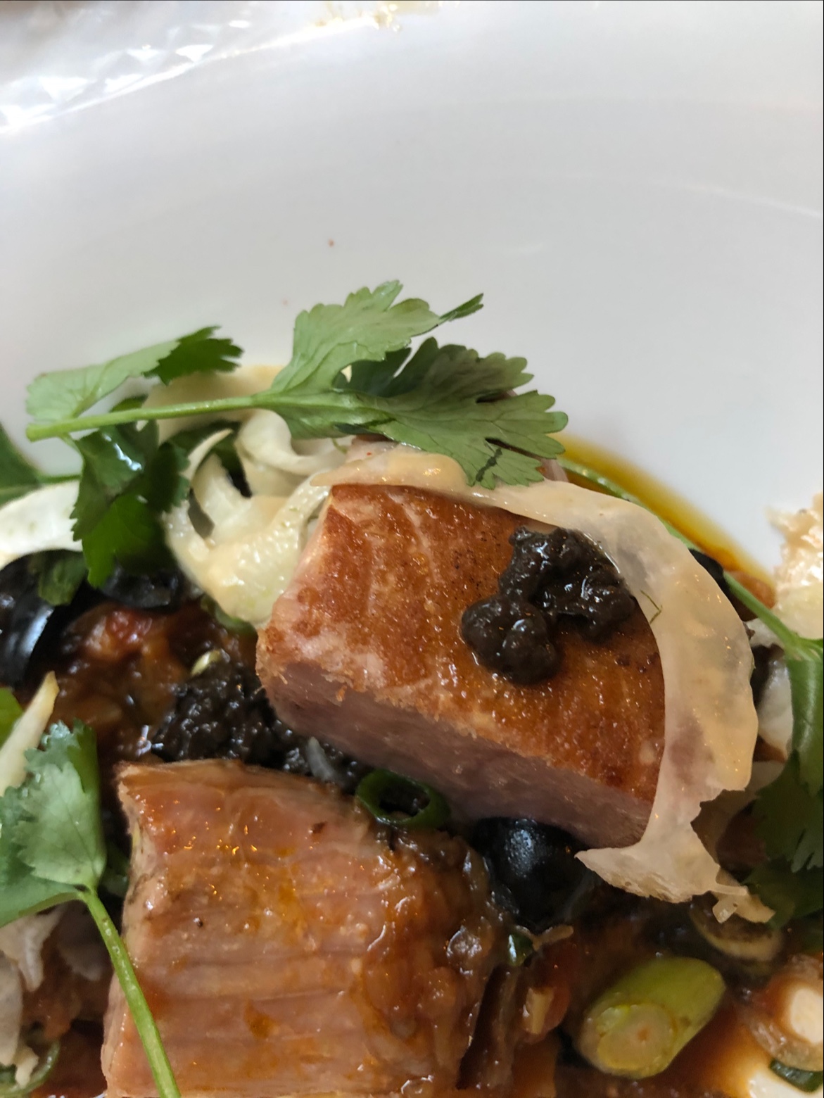 18 octobre 2018 : Après avoir voyagé dans plus de 30 pays et mangé à tous les niveaux de l'échelle sociale, du très haut de gamme au trou dans les tanières murales, le service prétentieux éclipse la cuisine française fusion-ish. Nous nous sommes assis dans le bar du milieu, à côté d'un autre couple servi à peu près au même moment. Malheureusement pour nous, nous avons eu le plus grand (des deux) serveurs pour nous servir. Ce grand serveur nous a mis extrêmement mal à l'aise à cause des tactiques de vente sous haute pression du début (nous sommes de petite taille et nous ne mangeons pas beaucoup), mais il nous a été agressivement suggéré de commander encore un autre plat (car le restaurant était complet, ce qui ce n'était pas le cas pendant les 2h30 de notre séjour là-bas - ils étaient occupés à 75% au maximum). Après avoir soumis notre commande (qui comprenait de l'eau sans gaz), nous sommes restés assis pendant environ 25 minutes sans service. Pendant ce temps, le couple voisin se faisait immédiatement servir de l'eau et la versait dans ses tasses. Quand j'ai gentiment rappelé à notre serveur notre eau manquante, il a giflé la bouteille mouillée sur notre table et c'était tout - il n'a pas pris la peine de la verser pour nous ni de montrer le moindre remords. L'expérience culinaire s'est dégradée à partir de là. Je ne comprends pas ce qu'on a fait pour mériter ce genre de traitement alors que tout ce qu'on offrait c'était du respect ? Juste terrible et prétentieux. Éviter.