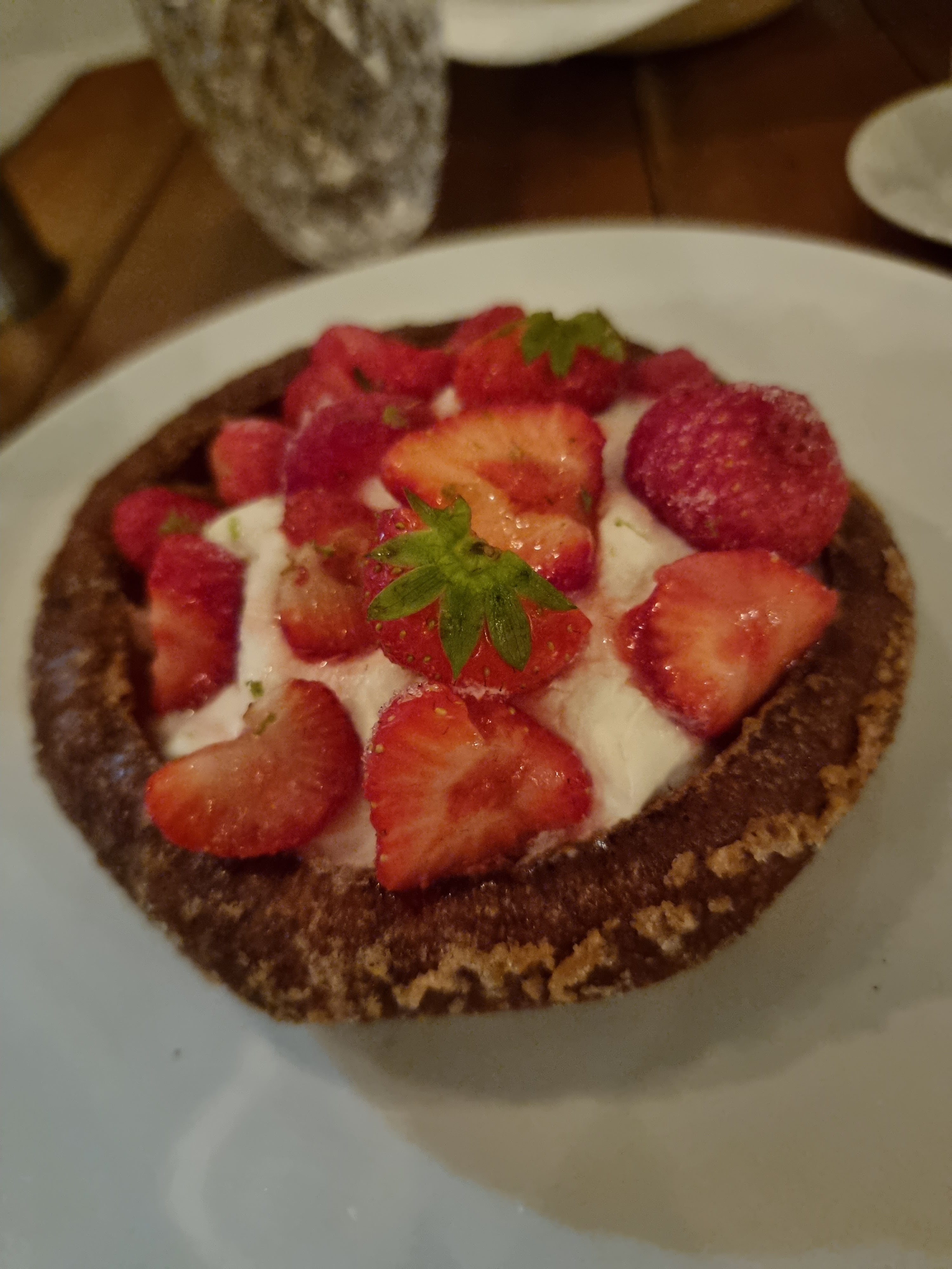 Joli endroit, et très bon accueil! Les plats n’étaient pas mal du tout (tartare assez classique, bon suprême de volaille…) mais le meilleur était le dessert: une « pascade » (plat traditionnel, sorte de crêpe / omelette sucrée) au chocolat, très fondante à l’intérieur et croustillante, absolument délicieuse!