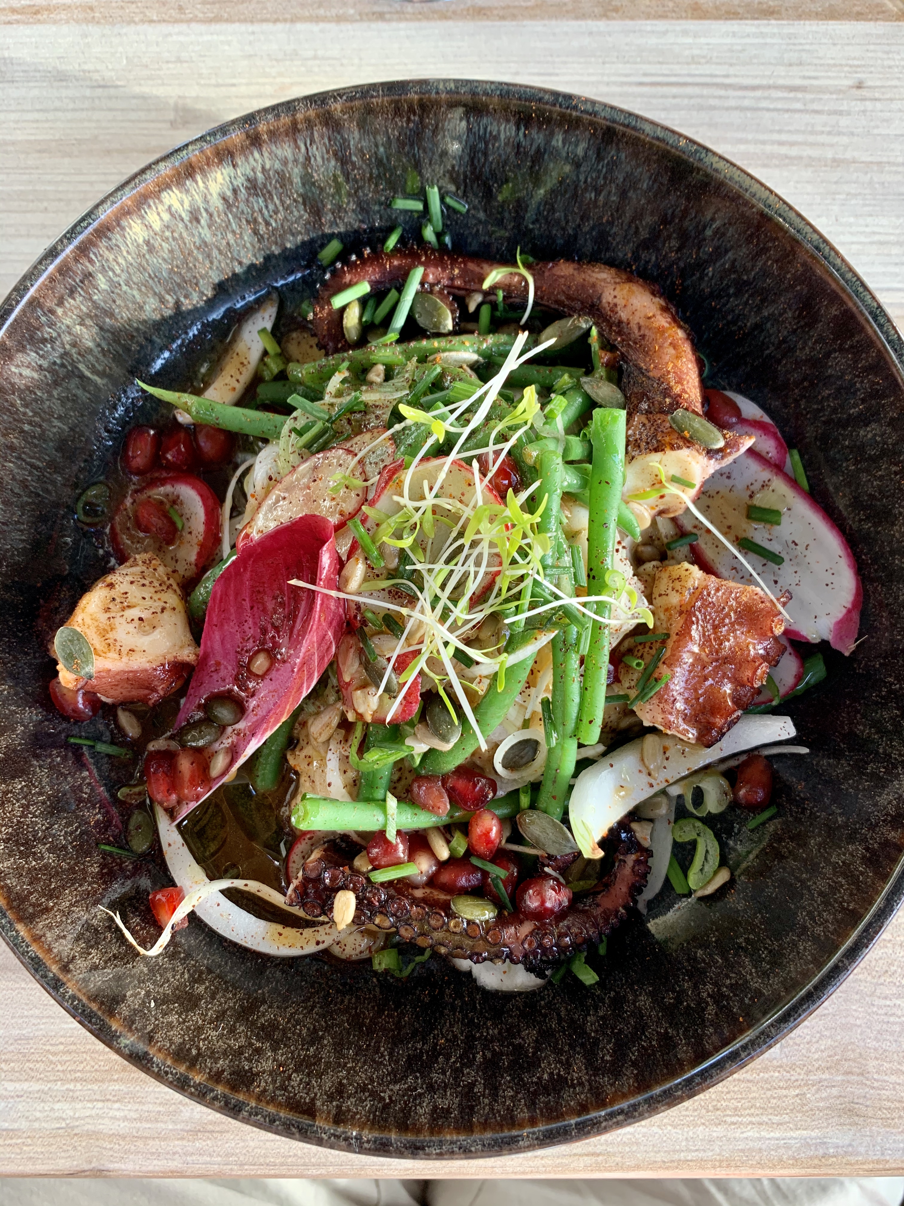 Tout est parfait. Le poulpe comme nous ne l'avons jamais gouté ... Service au top , enfin une équipe qui prend plaisir à faire plaisir aux autres .... !!! Quelle chance d'avoir pu manger dans ce restaurant sans reservation, notre meilleur expérience culinaire durant ce séjour de 3 jours à Capbreton. Ne changez rien !!! +++