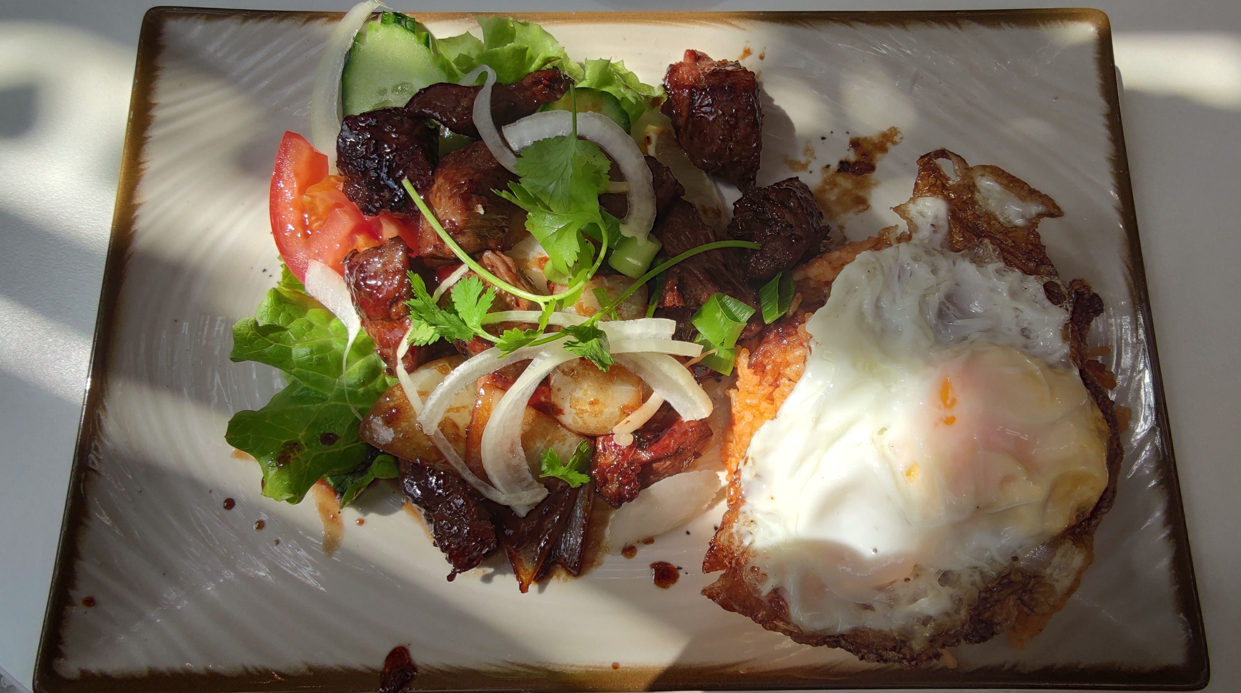 Accueil sympathique, belle terrasse. Nous avons pris le boeuf satè. Super bon. La salade de bœuf viet. La finesse des plats viet dans une assiette. Mélange d'acide, de sucré, de salé, d'herbe fraîche. Clin d'œil au serveur: souvenir du quartier école véto.