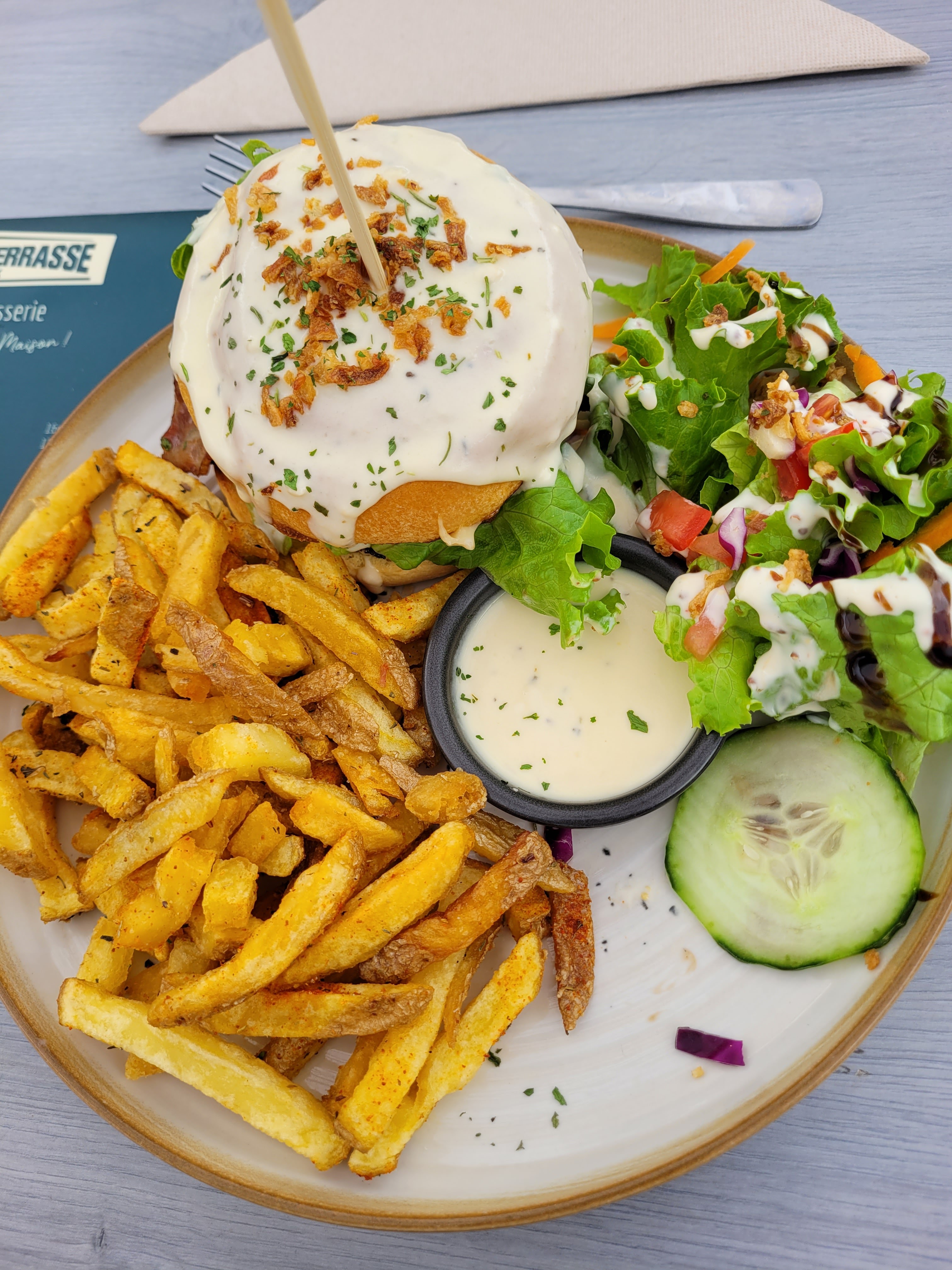 Le burger au maroilles avec les frites maison sont un régal. On sent clairement le fait maison et la qualité des produits, ce qui rend le plat excellent. Le mélange de crudités, qui change de la salade trop classique, amène le côté fraîcheur qui équilibre le plat. Le seul petit bémol côté environnement, la salle est très bruyante, certainement dû au fait qu'elle soit petite j'imagine.