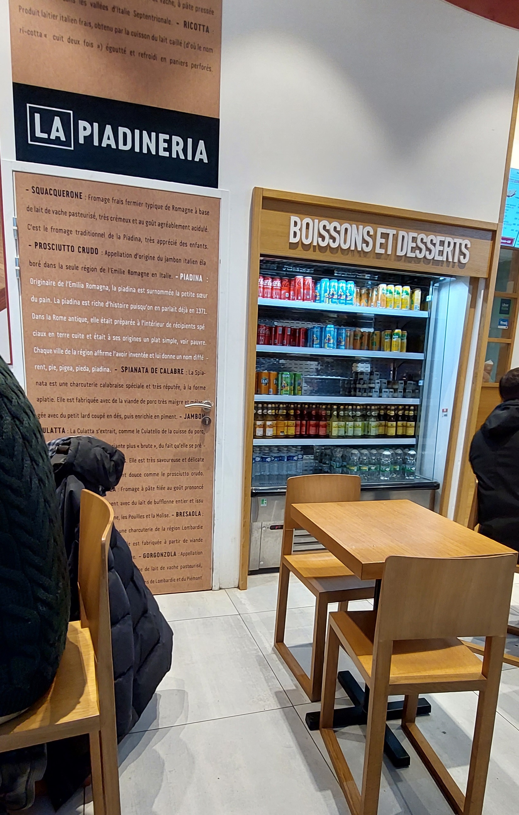 Des vraies piadine italiennes, des ingrédients très frais et une ambiance très conviviale et sympathique ! À ne pas manquer lorsque vous faites du shopping !!!