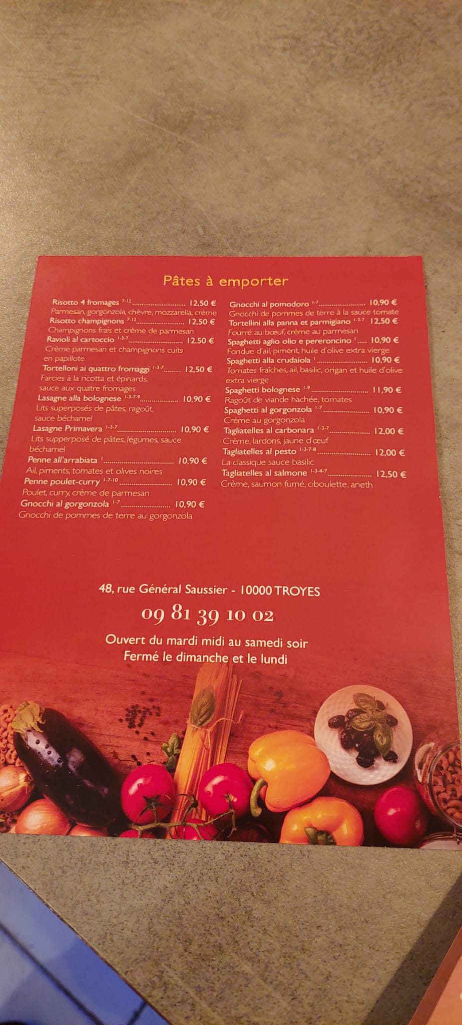 De bonnes portions, les plats que nous avons choisis étaient très bons et le service est rapide. Pensez à réserver puisqu’ils sont très souvent complet ! Selon moi, le meilleur italien de Troyes. Un poil cher les desserts et les softs mais très bon