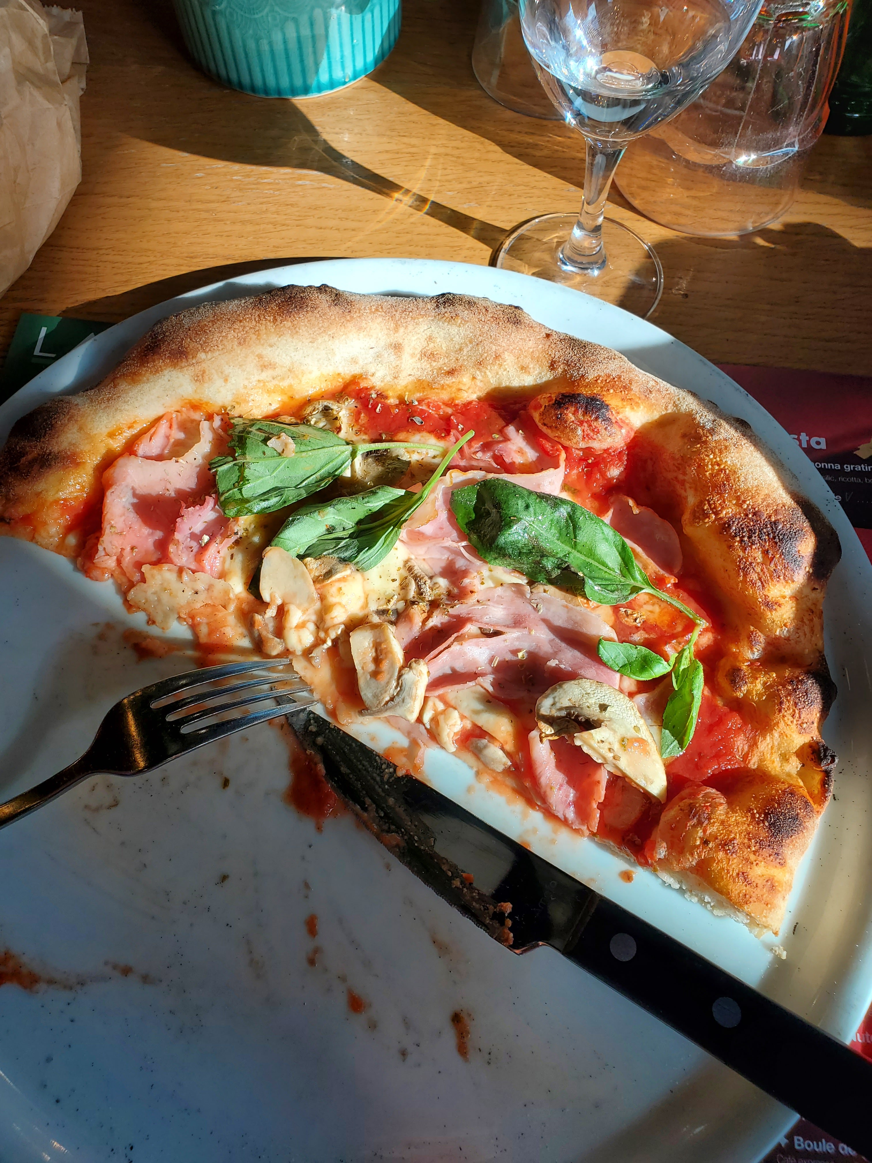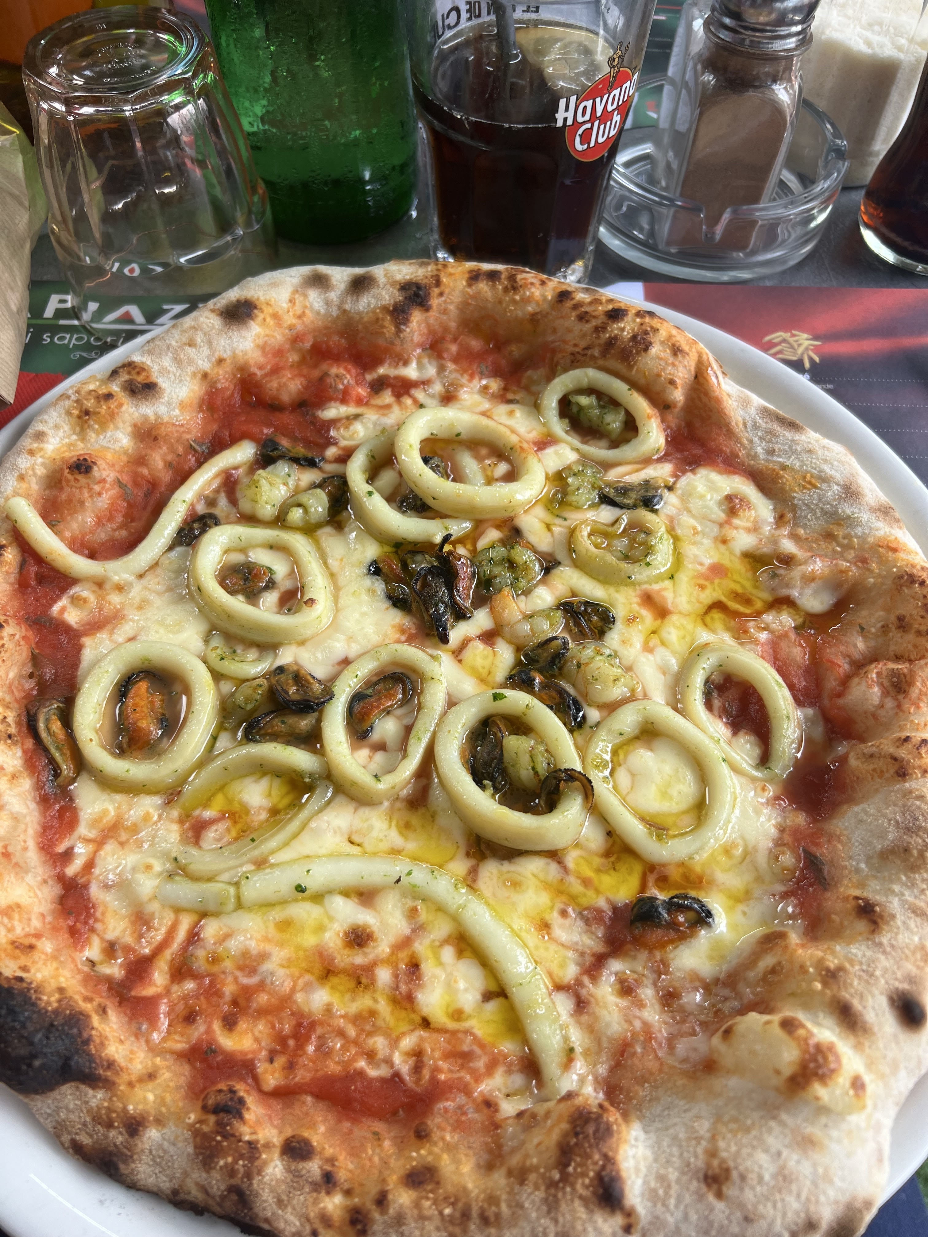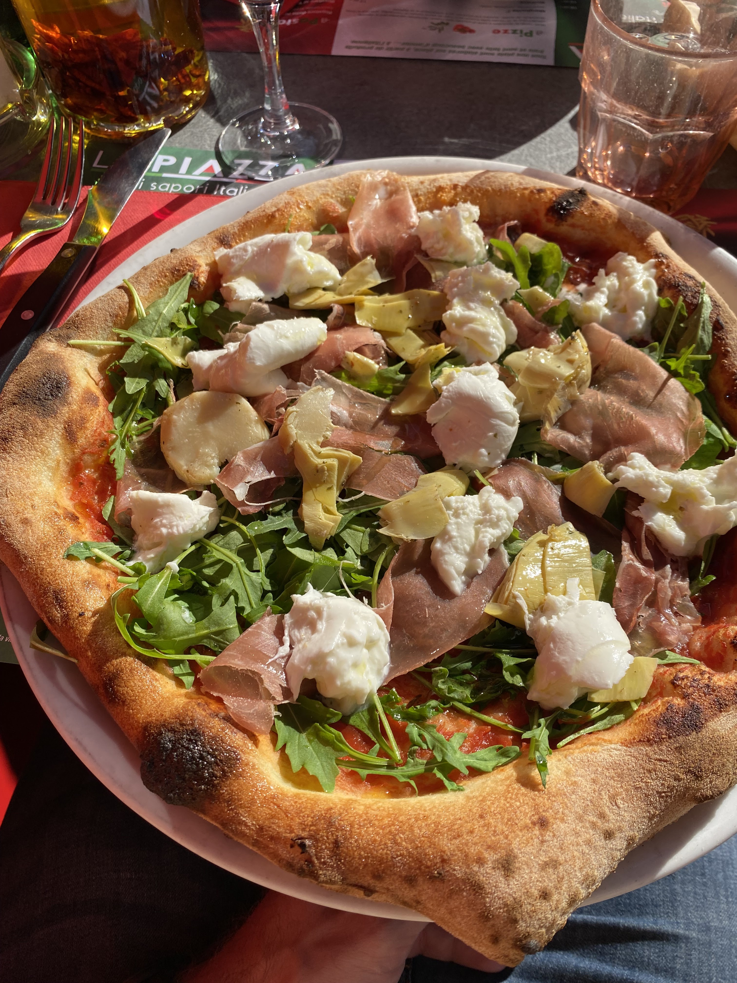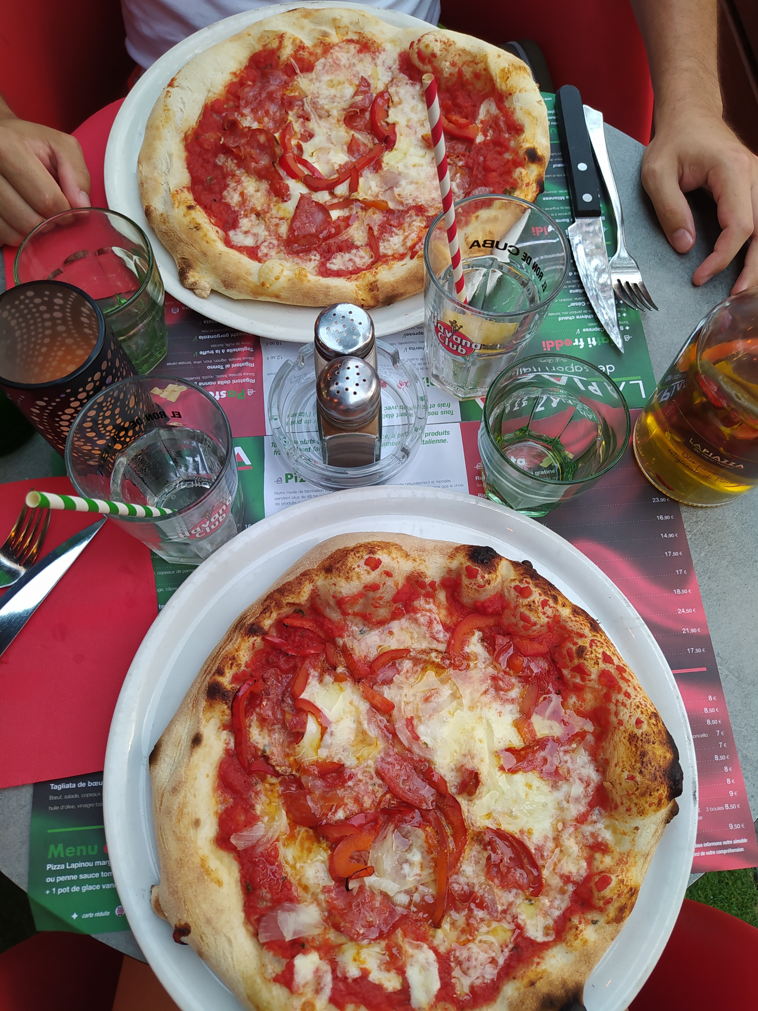 En direct de la piazza, ça fait 45 min qu'on attend, on est complètement ignoré, donc j'ai le temps de vous écrire. Dès qu'on aura eu nos pizzas, je vous dirai si c'est bon. Voilà au bout d'une heure on a eu nos pizzas. Elles sont bonnes, tièdes puisque ça 20 minutes qu'elles attendent de nous être servi, mais ça va elles sont bonnes. Mauvaise expérience, à s'y rendre uniquement si on a pas le choix.