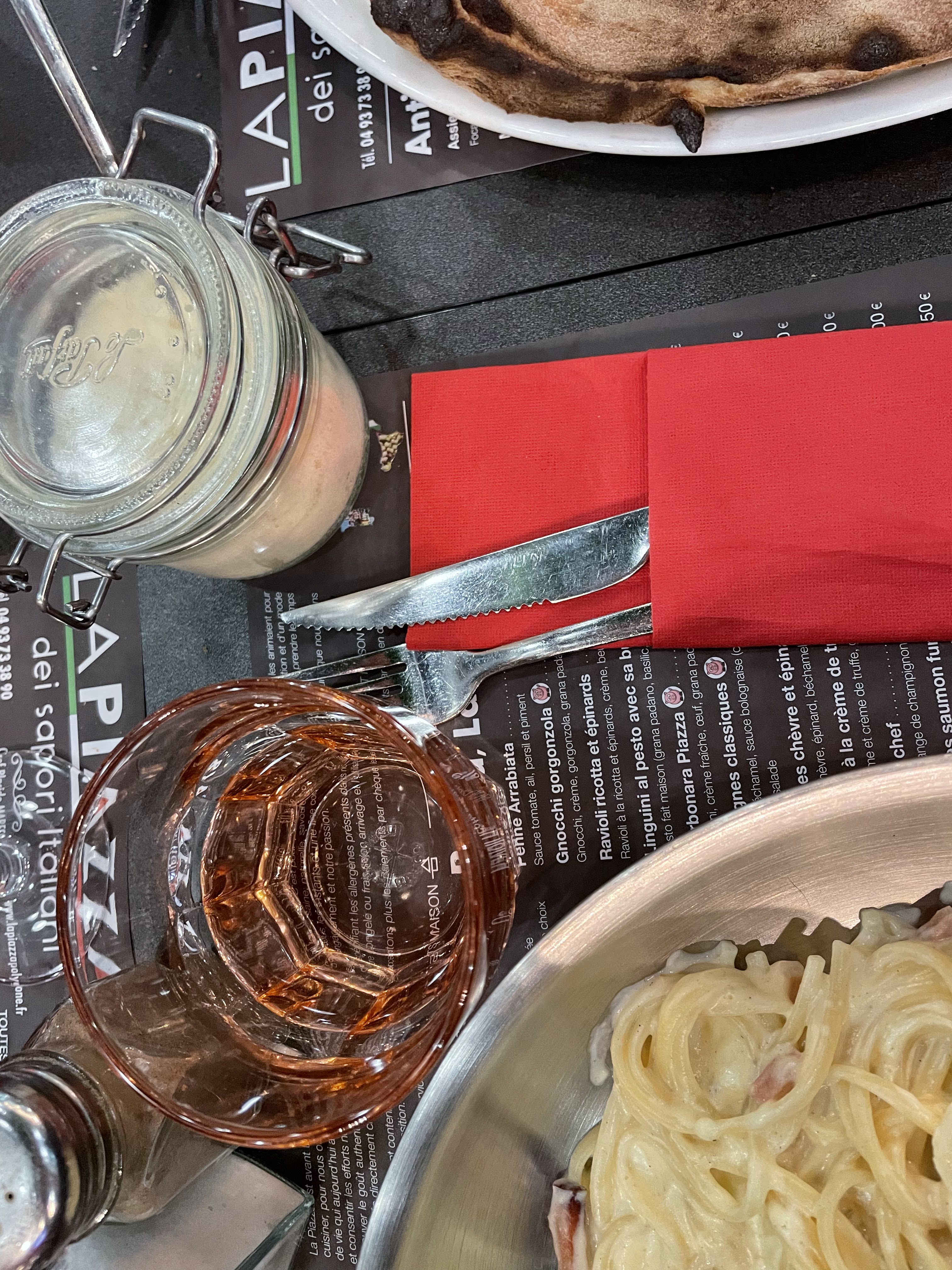 Repas frais, bien exécutés, tout en simplicité. Les plats de pâtes sont servis dans des casseroles, original ! J'adore
