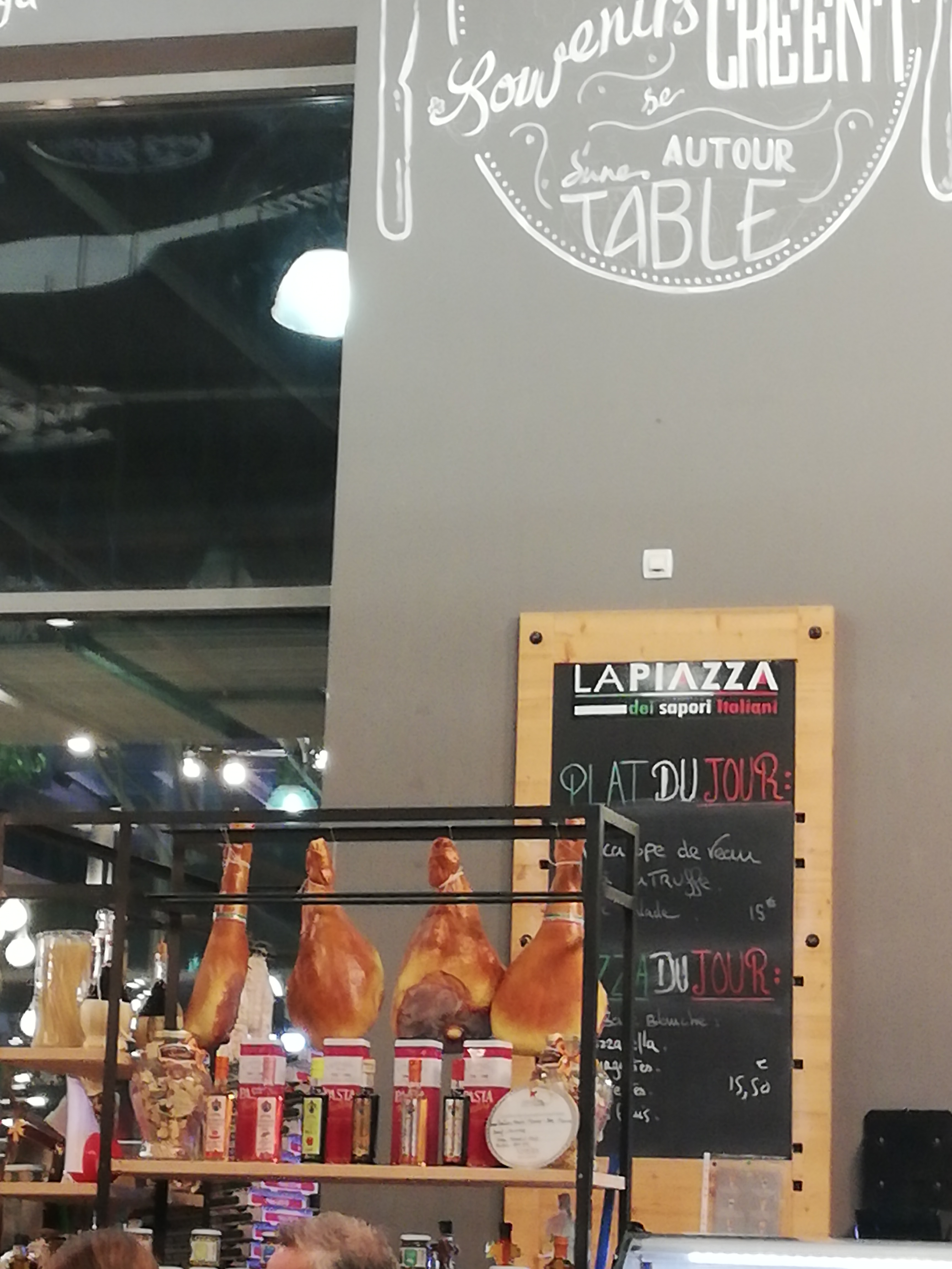 Situé dans l'allée principale des restaurants du centre commercial Polygone Riviera, La Piazza propose une cuisine simple mais plutôt bonne. La terrasse extérieure située à l'opposé de l'entrée du restaurant est plus calme et ombragée que la première. J'ai découvert le focaccia burger : original et réussi. Les frites servies en accompagnement étaient bonnes.